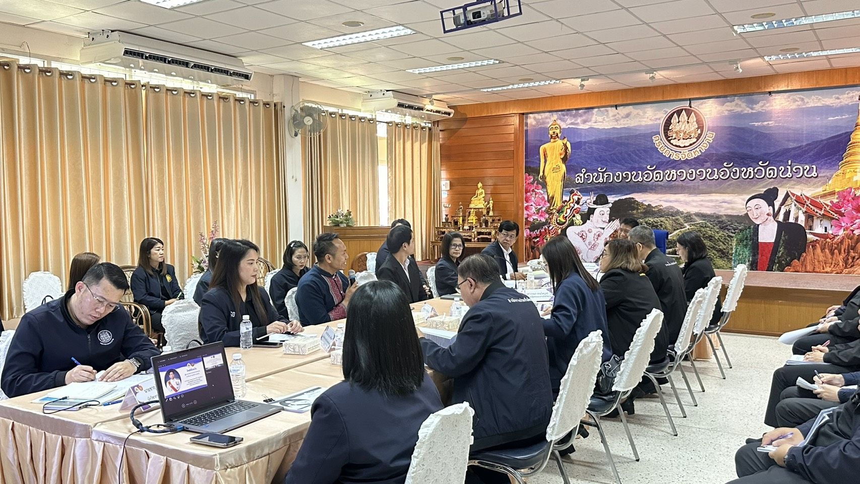 วันที่ 26 กุมภาพันธ์ 2569 เวลา 09.00 น. ว่าที่ร้อยตรี สมศักดิ์ พรหมดำ ผู้ตรวจราชการกระทรวงแรงงาน เป็นประธานการประชุมสำนักงานแรงงานจังหวัดน่าน เพื่อตรวจติดตามความก้าวหน้าผลการปฏิบัติงานตามแผนการตรวจราชการของสำนักงานปลัดกระทรวงแรงงาน ประจำปี 2569 ณ ห้องประชุมสำนักงานจัดหางานจังหวัดน่าน จากนั้น เวลา 10.00 น. ผู้ตรวจราชการกระทรวงแรงงาน เป็นประธานการประชุมหัวหน้าส่วนราชการสังกัดกระทรวงแรงงานจังหวัดน่าน เพื่อตรวจติดตามความก้าวหน้าของผลการปฏิบัติงานตามประเด็นแผนการตรวจราชการของผู้ตรวจราชการกระทรวงแรงงาน ประจำปีงบประมาณ พ.ศ. 2569 รอบที่ 2 (Progress Review) เพื่อรับฟังความก้าวหน้าและปัญหาอุปสรรคในการขับเคลื่อนภารกิจด้านแรงงานในระดับพื้นที่ โดยมี นายชาติวุฒิ ทองกัน ผู้ตรวจราชการกรม กรมพัฒนาฝีมือแรงงาน นางสาวนมิตา วายนต์ ผู้ตรวจราชการกรม สำนักงานประกันสังคม นายชาคริส บู่แก้ว รักษาการประธานหอการค้าจังหวัดน่านและกรรมการหอการค้าจังหวัดน่านฝ่ายประสานงานภาครัฐ นายพีระพล จารุสิทธางกูร ผู้ช่วยประธานสภาอุตสาหกรรมท่องเที่ยวจังหวัดน่าน เข้าร่วมประชุมด้วย ณ ห้องประชุมสำนักงานจัดหางานจังหวัดน่าน ตำบลไชยสถาน อำเภอเมืองน่าน จังหวัดน่าน