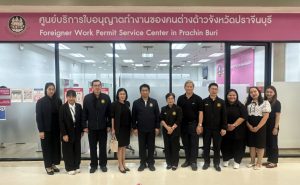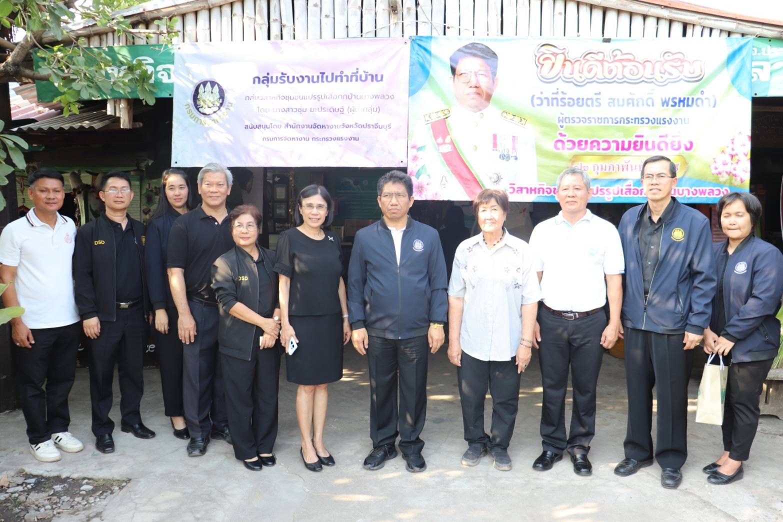 วันที่ 12 กุมภาพันธ์ 2569 เวลา 13.00 น. ว่าที่ร้อยตรี สมศักดิ์ พรหมดำ ผู้ตรวจราชการกระทรวงแรงงาน ลงพื้นที่ตรวจเยี่ยมศูนย์บริการออกใบอนุญาตทำงานแก่คนต่างด้าว ในพื้นที่จังหวัดปราจีนบุรี เพื่อติดตามการให้บริการออกใบอนุญาตทำงาน พบปะพูดคุยกับผู้มารับบริการ และเยี่ยมชมกระบวนการผลิตใบอนุญาตทำงาน ณ ห้างสรรพสินค้าโลตัส อำเภอเมืองปราจีนบุรี จังหวัดปราจีนบุรี จากนั้น เวลา 15.00 น. ผู้ตรวจราชการกระทรวงแรงงาน และคณะ ลงพื้นที่ตรวจเยี่ยมกลุ่มวิสาหกิจชุมชนแปรรูปเสื่อกกบ้านบางพลวง ซึ่งเป็นพืชที่มีอยู่ในท้องถิ่น โดยการแปรรูปผลิตภัณฑ์จากเส้นกก เป็นผลิตภัณฑ์ต่างๆ เช่น กระเป๋า รองเท้า แผ่นรองจานชาม เสื่อกก ฯลฯ ภายใต้โครงการผู้รับงานไปทำที่บ้าน ณ บ้านบางพลวง ตำบลบางพลวง อำเภอบ้านสร้าง จังหวัดปราจีนบุรี