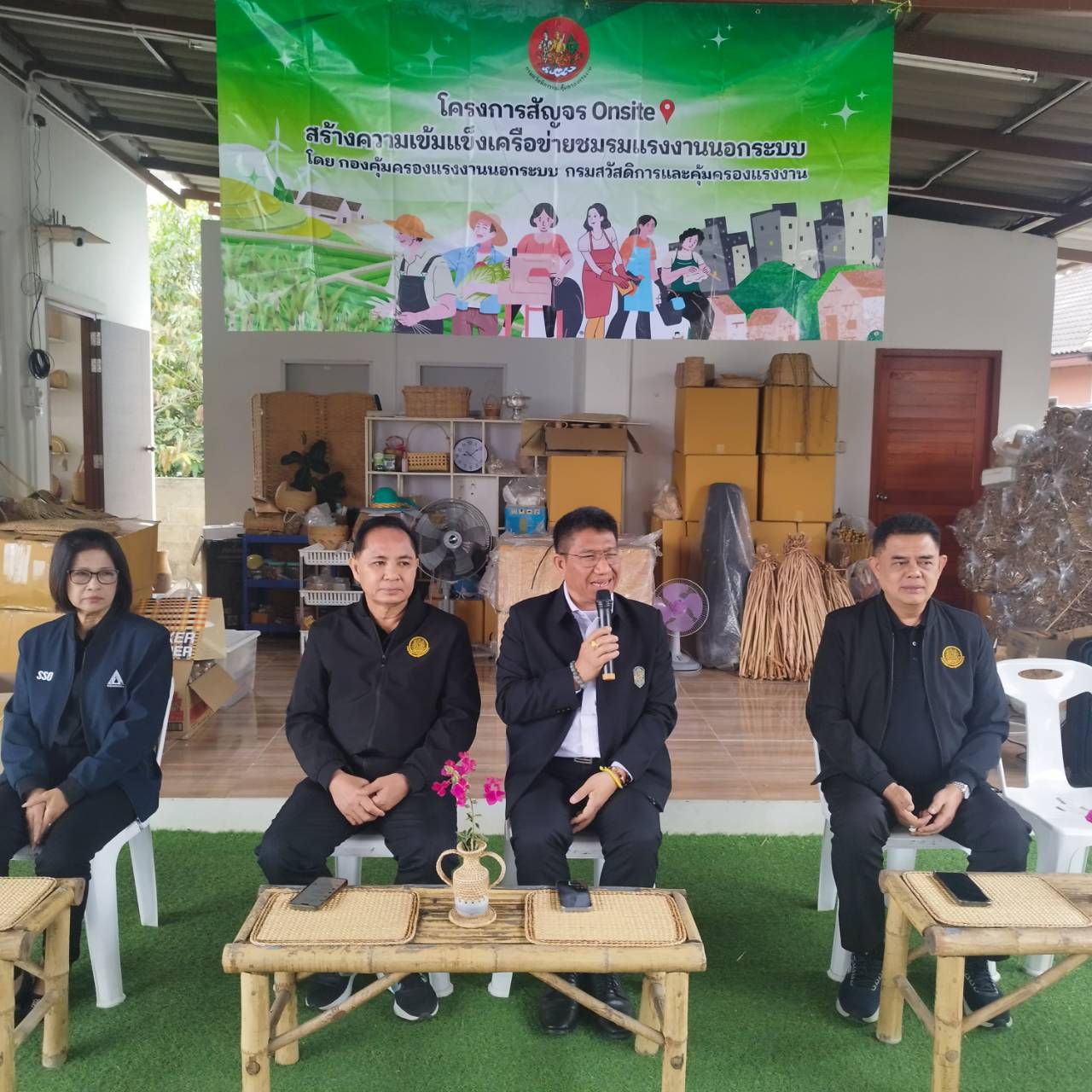 วันที่ 24 กุมภาพันธ์ 2569 เวลา 09.00 น. ว่าที่ร้อยตรี สมศักดิ์ พรหมดำ ผู้ตรวจราชการกระทรวงแรงงาน ร่วมเป็นเกียรติในพิธีเปิดโครงการสัญจร Onsite สร้างความเข้มแข็งเครือข่ายชมรมแรงงานนอกระบบ ครั้งที่ 2 โดยมี นายสุรสิทธิ์ ศรีแก้ว รองอธิบดีกรมสวัสดิการและคุ้มครองแรงงาน เป็นประธานในพิธี จากนั้นผู้ตรวจราชการกระทรวงแรงงาน ได้ร่วมประชุมกับชมรมแรงงานนอกระบบจังหวัดพะเยา โดยมีกลุ่มเครือข่ายเข้าร่วม จำนวน 4 กลุ่ม ประกอบด้วย กลุ่มวิสาหกิจชุมชนลินชวาหัตถกรรมกว๊านพะเยา ต.บ้านต๊ำ กลุ่มจักสานผักตบชวาวาด ต.สันป่าม่วง กลุ่มพะเยารอเธอ ผ้ากัญยานี ต.บ้านต๋อม และกลุ่มวิสาหกิจชุมชนเฮือนปฏิมาเซรามิค ต.แม่ปืม เพื่อขับเคลื่อนการดำเนินงานตามนโยบายกระทรวงแรงงานในการส่งเสริมและคุ้มครองแรงงานนอกระบบในพื้นที่ชุมชนต่อไป