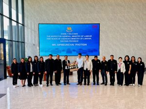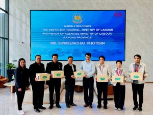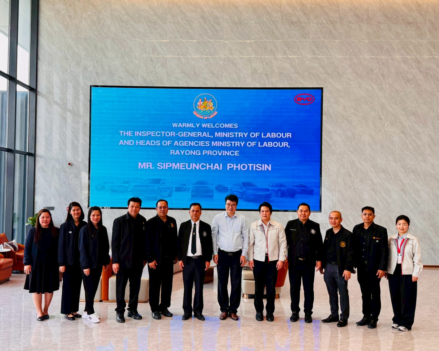 วันที่ 11 กุมภาพันธ์ 2569 เวลา 14.00 น.นายสิบหมื่นชัย โพธิสินธุ์ ผู้ตรวจราชการกระทรวงแรงงาน และคณะ ลงพื้นที่ตรวจเยี่ยมและรับฟังข้อมูลการประกอบกิจการ รวมถึงแลกเปลี่ยนความคิดเห็นด้านการบริหารจัดการแรงงานในสถานประกอบการ โดยมี คุณเซียว ไห่ผิง ผู้อำนวยการฝ่ายบริหาร บริษัท บีวายดี ออโต้ (ประเทศไทย) จำกัด และคณะ ให้การต้อนรับ ณ บริษัท บีวายดี ออโต้ (ประเทศไทย) จำกัด อำเภอนิคมพัฒนา จังหวัดระยอง