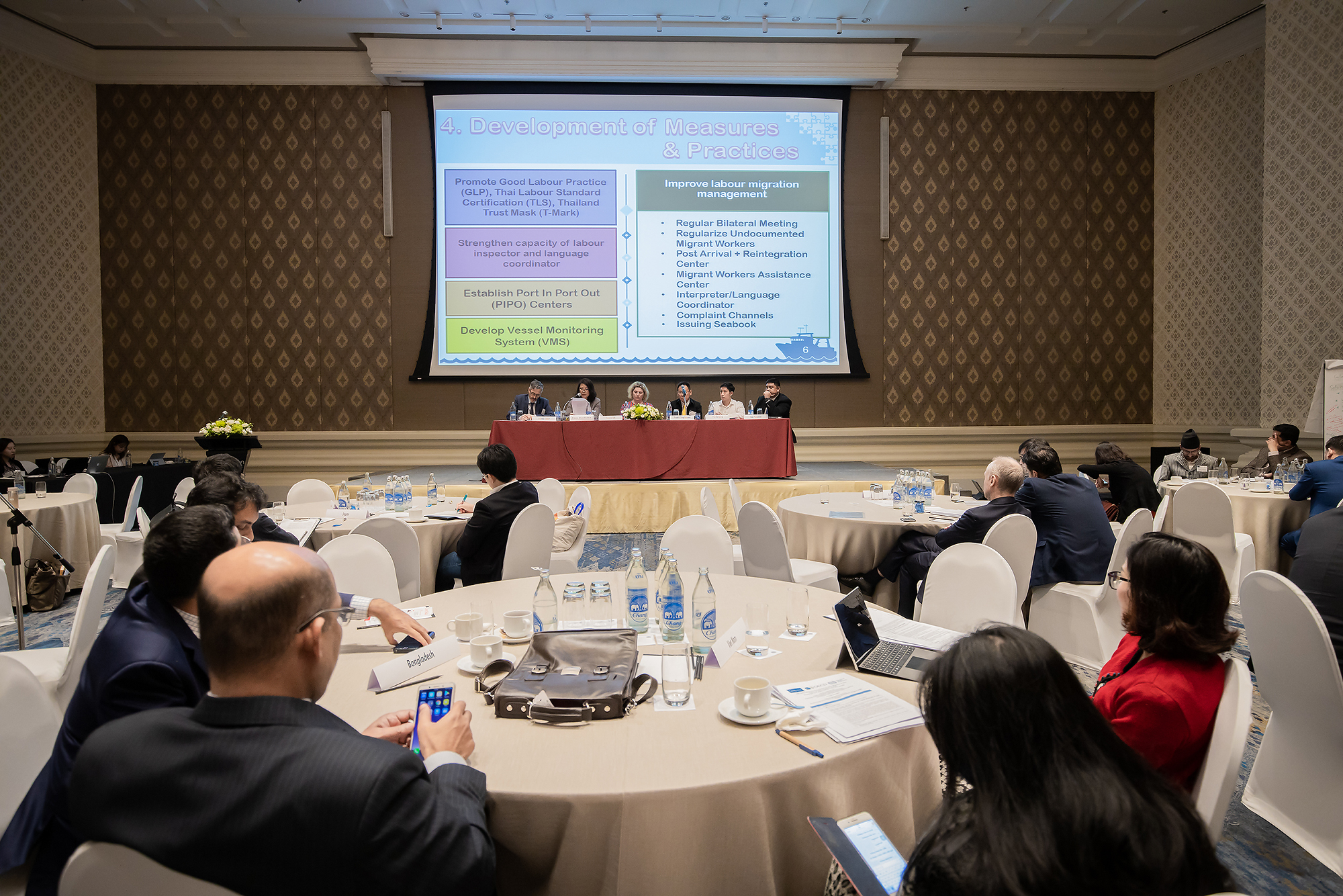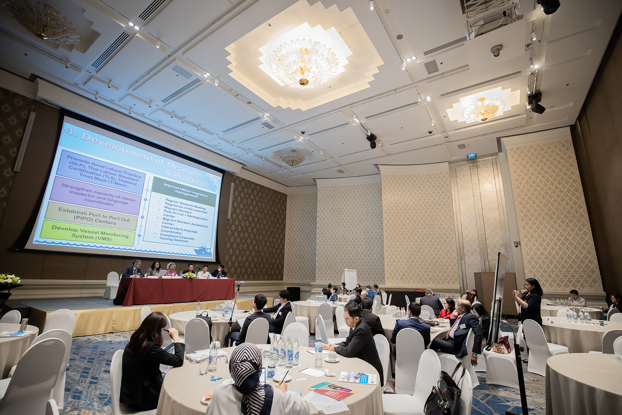 วันนี้ (7 ก.พ. 63) เวลา 15.30 น. นายสุทธิ สุโกศล ปลัดกระทรวงแรงงาน มอบหมายให้ นางพัฒนา พันธุฟัก ผู้ตรวจราชการกระทรวงแรงงาน เป็นผู้ร่วมอภิปรายในการประชุม 10th ADBI-OECD – ILO Roundtable on Labour Migration in Asia : Future Migration in Asia : Challenges and Opportunities in the Next Decade ในหัวข้อ การแลกเปลี่ยนประสบการณ์การดำเนินการแก้ไขปัญหาสภาพการทำงาน โดยเฉพาะการปรับปรุงสภาพการทำงานในภาคประมงและอุตสาหกรรมแปรรูปอาหารทะเล ผ่านโครงการความร่วมมือ Ship to Shore Rights โดยมีผู้ร่วมอภิปราย ประกอบด้วย ผู้แทนสหภาพยุโรปประจำประเทศไทย ผู้เชี่ยวชาญด้านการจัดการแรงงานและการตรวจแรงงาน สำนักงานแรงงานระหว่างประเทศประจำภูมิภาคเอเชียและแปซิฟิก สมาพันธ์แรงงานรัฐวิสาหกิจสัมพันธ์ ผู้แทนบริษัท ไทยยูเนี่ยน กรุ๊ป จำกัด (มหาชน) และผู้แทนจากประเทศอินโดนีเซีย ณ โรงแรมพูลแมน คิง เพาเวอร์ กรุงเทพฯ