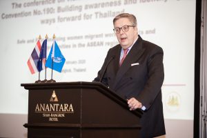 เราตระหนักดีว่า ความรุนแรงและการล่วงละเมิดในโลกแห่งการทํางานเป็นสิ่งที่ขัดต่อ สิทธิมนุษยชน ไม่สามารถยอมรับได้ และไม่ควรที่จะเกิดต่อผู้ใด ไม่ว่าผู้นั้นจะอยู่ในสถานะใดๆ ก็ตาม ประเทศไทยเป็นหนึ่งในสมาชิก 187 ประเทศขององค์การแรงงานระหว่างประเทศ ท่ีได้ลงคะแนนเสียงสนับสนุนการรับรองมาตรฐานแรงงานระหว่างประเทศฉบับใหม่ หรือ อนุสัญญาฉบับที่ 190 และข้อแนะฉบับที่ 206 ว่าด้วยความรุนแรงและการล่วงละเมิด ในโลกแห่งการทํางาน ซึ่งถือเป็นอนุสัญญาฉบับประวัติศาสตร์ที่ได้รับความเห็นชอบจาก ที่ประชุมใหญ่องค์การแรงงานระหว่างประเทศในสมัยที่ 108 เมื่อปีที่ผ่านมา ซึ่งเป็น Centenary Session หรือ วาระโอกาสเฉลิมฉลองครบรอบ 100 ปี และมีความสําคัญเป็น อย่างยิ่งในฐานะตราสารระหว่างประเทศฉบับแรกที่แสดงถึงความมุ่งมั่นของประชาคมโลก ที่จะขจัดความรุนแรงและการล่วงละเมิดในโลกแห่งการทํางาน
