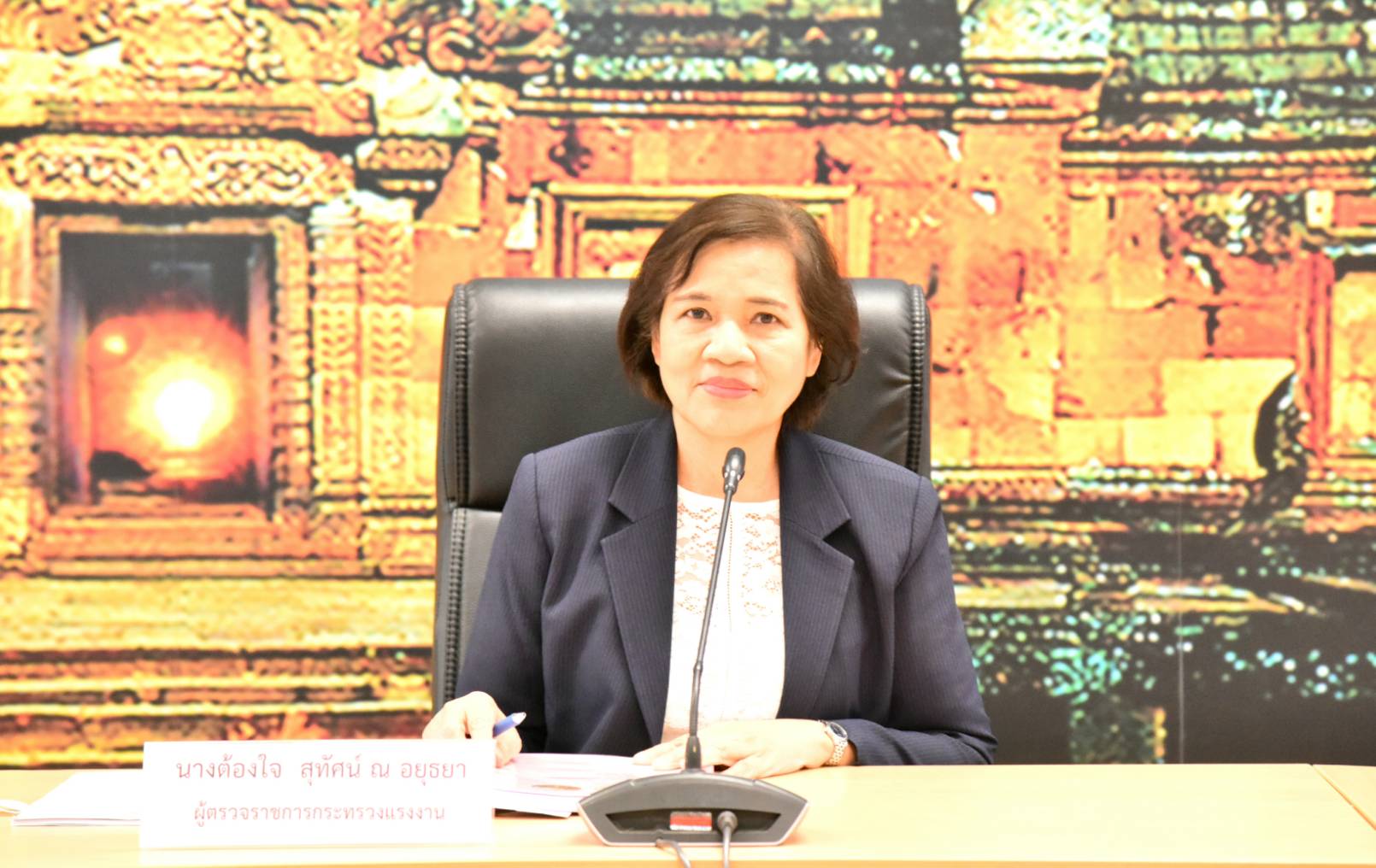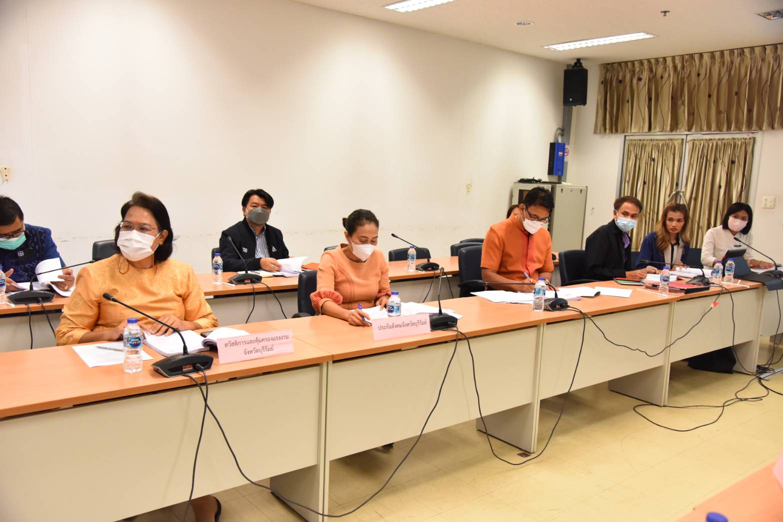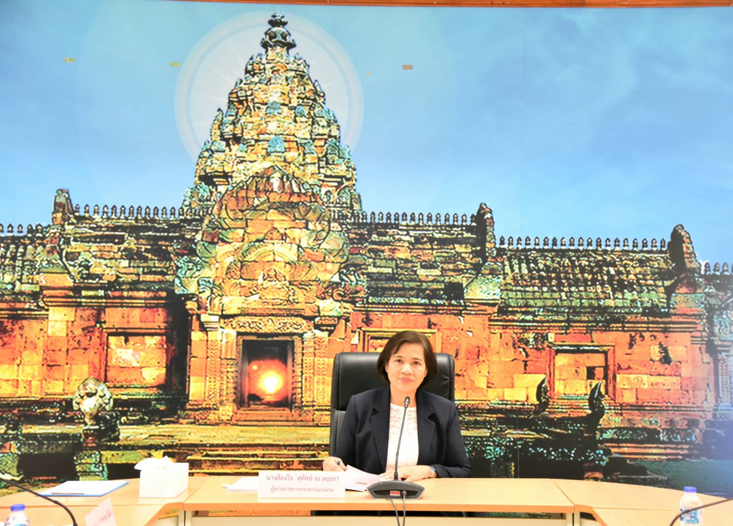 On March 3, 2023, at 15.00 hours, the Ministry of Labour’s Inspector-General, Mrs. Tongjai Suthat Na Ayutthaya, chaired the meeting of heads of government agencies under the Ministry of Labour in Buriram Province to follow up on the initial screening monitoring program for forced labour or services and human trafficking among migrant workers following the Screening Operational Procedure (SOP) according to the national referral mechanism. The Buriram Provincial Labour Officer, Captain Kitsompong Klahan, and executives under the Ministry of Labour in Buriram provinces also joined the meeting. The Ministry of Labour’s Inspector-General asked the subordinate agencies to send information about problems and obstacles related to foreign workers to proceed further. The occasion took place at the Fai Kham Conference Room, 3rd Floor, Buriram City Hall.