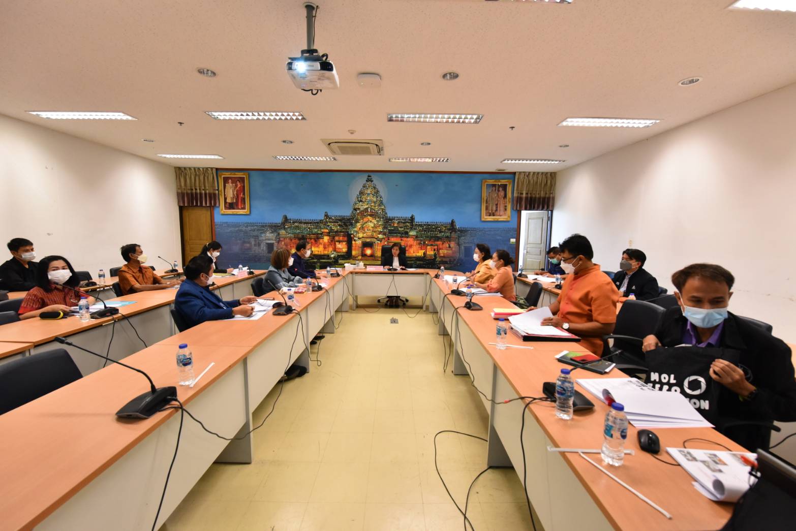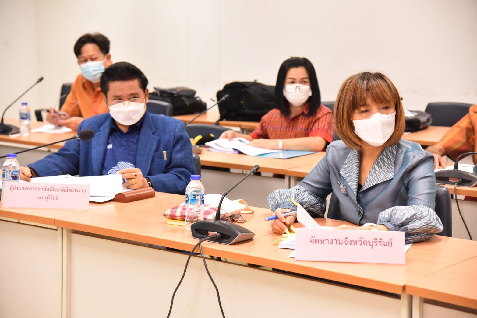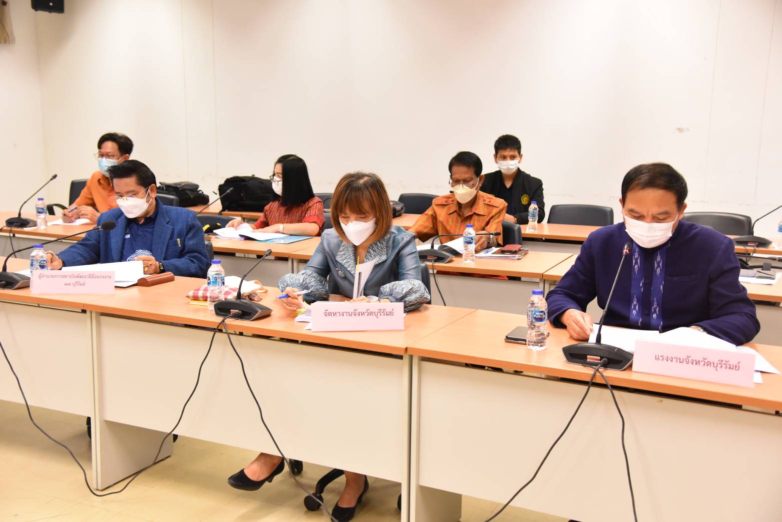 On March 3, 2023, at 15.00 hours, the Ministry of Labour’s Inspector-General, Mrs. Tongjai Suthat Na Ayutthaya, chaired the meeting of heads of government agencies under the Ministry of Labour in Buriram Province to follow up on the initial screening monitoring program for forced labour or services and human trafficking among migrant workers following the Screening Operational Procedure (SOP) according to the national referral mechanism. The Buriram Provincial Labour Officer, Captain Kitsompong Klahan, and executives under the Ministry of Labour in Buriram provinces also joined the meeting. The Ministry of Labour’s Inspector-General asked the subordinate agencies to send information about problems and obstacles related to foreign workers to proceed further. The occasion took place at the Fai Kham Conference Room, 3rd Floor, Buriram City Hall.