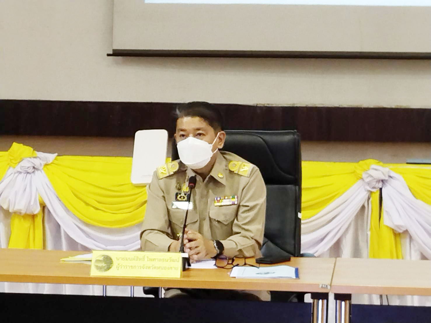 วันที่ 28 ตุลาคม 2564 เวลา 10.00 น. นายมนต์สิทธิ์ ไพศาลธนวัฒน์ ผู้ว่าราชการจังหวัดหนองคาย ได้มอบเกียรติบัตรและเข็มเชิดชูเกียรติอาสาสมัครแรงงานดีเด่น ประจำปี 2564 แก่นางรัศมี ทองเกตุ อาสาสมัครแรงงานตำบลค่ายบกหวาน อำเภอเมืองหนองคาย จังหวัดหนองคาย เนื่องจากเป็นผู้ปฏิบัติภารกิจด้านแรงงานด้วยการดูแลให้บริการประชาชนในพื้นที่อย่างต่อเนื่องสม่ำเสมอนับได้ว่าเป็นผู้ทำคุณประโยชน์อย่างยิ่งต่อกระทรวงแรงงาน จึงได้รับการคัดเลือกให้เป็นอาสาสมัครแรงงานดีเด่นจังหวัดหนองคาย ประจำปี 2564 ณ หอประชุมประจักษศิลปาคม ศาลากลางจังหวัดหนองคาย อำเภอเมืองหนองคาย จังหวัดหนองคาย