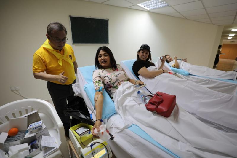 สำหรับช่วงบ่ายของวันเดียวกัน (เวลา12.00-18.00 น.) ฝ่ายแรงงานฯ ได้ร่วมกิจกรรมจิตอาสา “เราทำความดี ด้วยหัวใจ” โดยเชิญชวนชุมชนไทยและผู้สนใจเข้าร่วมกิจกรรมบริจาคโลหิต ภายใต้ชื่อ “โลหิต … หนึ่งคนให้ ต่อลมหายใจเพื่อนมนุษย์” เพื่อมอบแก่ Abu Dhabi Blood Bank เพื่อนำไปช่วยเหลือเพื่อนมนุษย์ต่อไป มีชุมชนไทยและผู้สนใจร่วมกิจกรรม จำนวน 60 คน