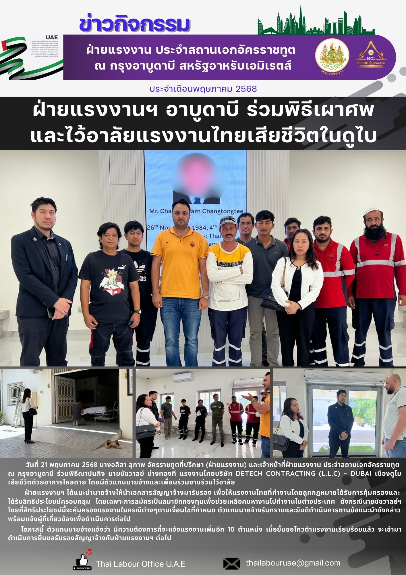 ฝ่ายแรงงานฯ อาบูดาบี ร่วมพิธีเผาศพ และไว้อาลัยแรงงานไทยเสียชีวิตในดูไบ