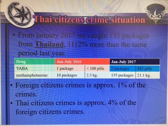 เมื่อวันที่ 18 – 22 สิงหาคม 2560 ฝ่านแรงงาน ประจำสถานเอกอัครราชทูต ณ กรุงเทลอาวีฟ ได้นำคณะของรองเลขาธิการ ป.ป.ส. ผู้ทรงคุณวุฒิพิเศษ สตช /รองผู้อำนวยการศูนย์อำนวยการปราบปรามยาเสพติด ผู้บังคับการกองการต่างประเทศ/หัวหน้าตำรวจสากลประเทศไทย (Interpol) ประชุมหารือกับ ผู้บัญชาการตำรวจสากลอิสราเอล (Israel Interpol) และ ผู้อำนวยการ Israel Anti-Drug Authority (IADA) รวมทั้งได้พบหารือกับนายจ้างอิสราเอลและบริษัทจัดหางานอิสราเอล ในการเสริมสร้างความร่วมมือในการสกัดกั้นยาเสพติดจากเมืองไทย และการลดการแพร่กระจายของยาเสพติดในหมู่แรงงานไทย ด้วยการส่งเสริมกิจกรรมสันทนาการและการสนับสนุนการแข่งขันกีฬาในหมู่แรงงานไทย พร้อมหาเครือข่ายแจ้งเบาะแสยาเสพติด ซึ่งฝ่ายแรงงานได้นำคณะฯ ออกเยี่ยมแรงงานไทยและร่วมกิจกรรมสันทนาการของแรงงานไทยต่อที่ Moshav En Habsor ทั้งนี้ เอกอัครราชทูต ณ กรุงเทลอาวีฟ ได้เป็นประธานในการเปิดการแข่งขันฟุตบอลและเซปัคตะกร้อ พร้อมมอบอุปกรณ์กีฬาและมอบถ้วยรางวัลจากกระทรวงแรงงานแก่ทีมชนะเลิศด้วย