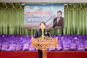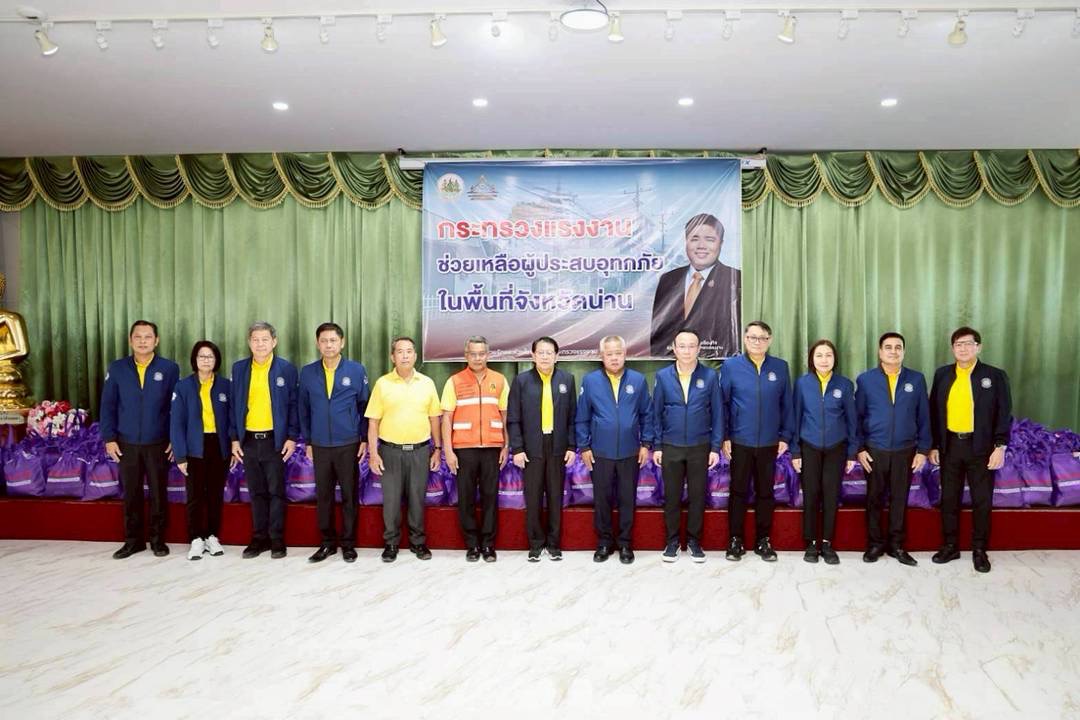 ด้านนายบุญสงค์ ทัพชัยยุทธ์ ปลัดกระทรวงแรงงาน กล่าวว่า กระทรวงแรงงานขอขอบคุณภาคีเครือข่ายของทุกกรมในสังกัดกระทรวงแรงงาน ที่ร่วมด้วยช่วยกันสนับสนุนสิ่งของเครื่องอุปโภคบริโภคให้กระทรวงแรงงานได้นำมาช่วยเหลือผู้ประสบภัย และหากพี่น้องจ.น่าน หรือพื้นที่ใดที่ได้รับความเดือดร้อนจากน้ำท่วม สามารถแจ้งเข้ามาที่กระทรวงแรงงาน หรือ 5 เสือแรงงานในพื้นที่ของท่าน อาสาสมัครแรงงาน บัณฑิตแรงงานในพื้นที่ หรือโทรสายด่วนกระทรวงแรงงาน 1506 ซึ่งกระทรวงแรงงานจะส่งเจ้าหน้าที่เข้าช่วยเหลือทันที เพื่อให้ทุกคนสามารถกลับมาทำงาน ประกอบอาชีพได้ตามปกติโดยเร็วต่อไป