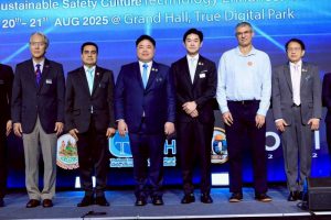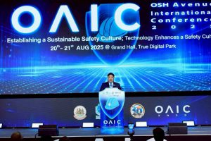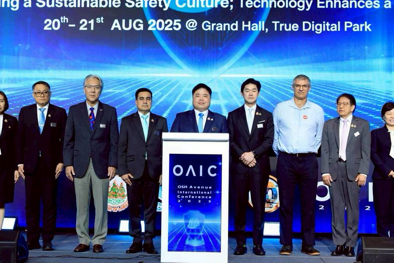 วันที่ 20 สิงหาคม 2568 เวลา 13.30 น. นายพงศ์กวิน จึงรุ่งเรืองกิจ รัฐมนตรีว่าการกระทรวงแรงงาน เป็นประธานเปิดงาน “สัมมนาวิชาการด้านความปลอดภัย อาชีวอนามัย และสภาพแวดล้อมในการทำงานระดับนานาชาติ OSH Avenue International Conference 2025 (OAIC 2025)” โดยมี นายจักรพงส์ สุเมธโชติเมธา ที่ปรึกษารัฐมนตรีว่าการกระทรวงแรงงาน นายสุรสิทธิ์ นิธิวุฒิวรรักษ์ เลขานุการรัฐมนตรีว่าการกระทรวงแรงงาน นายศักดินาถ สนธิศักดิ์โยธิน ผู้ช่วยปลัดกระทรวงแรงงาน และผู้บริหารระดับสูงกระทรวงแรงงาน ร่วมเป็นเกียรติ นายนันทชัย ปัญญาสุรฤทธิ์ ผู้อำนวยการสถาบันส่งเสริมความปลอดภัย อาชีวอนามัย และสภาพแวดล้อมในการทำงาน ผู้บริหาร สสปท. และผู้ประกอบการ ร่วมให้การต้อนรับ ณ แกรนด์ฮอลล์ ทรูดิจิทัล พาร์ค สุขุมวิท 101 กรุงเทพฯ