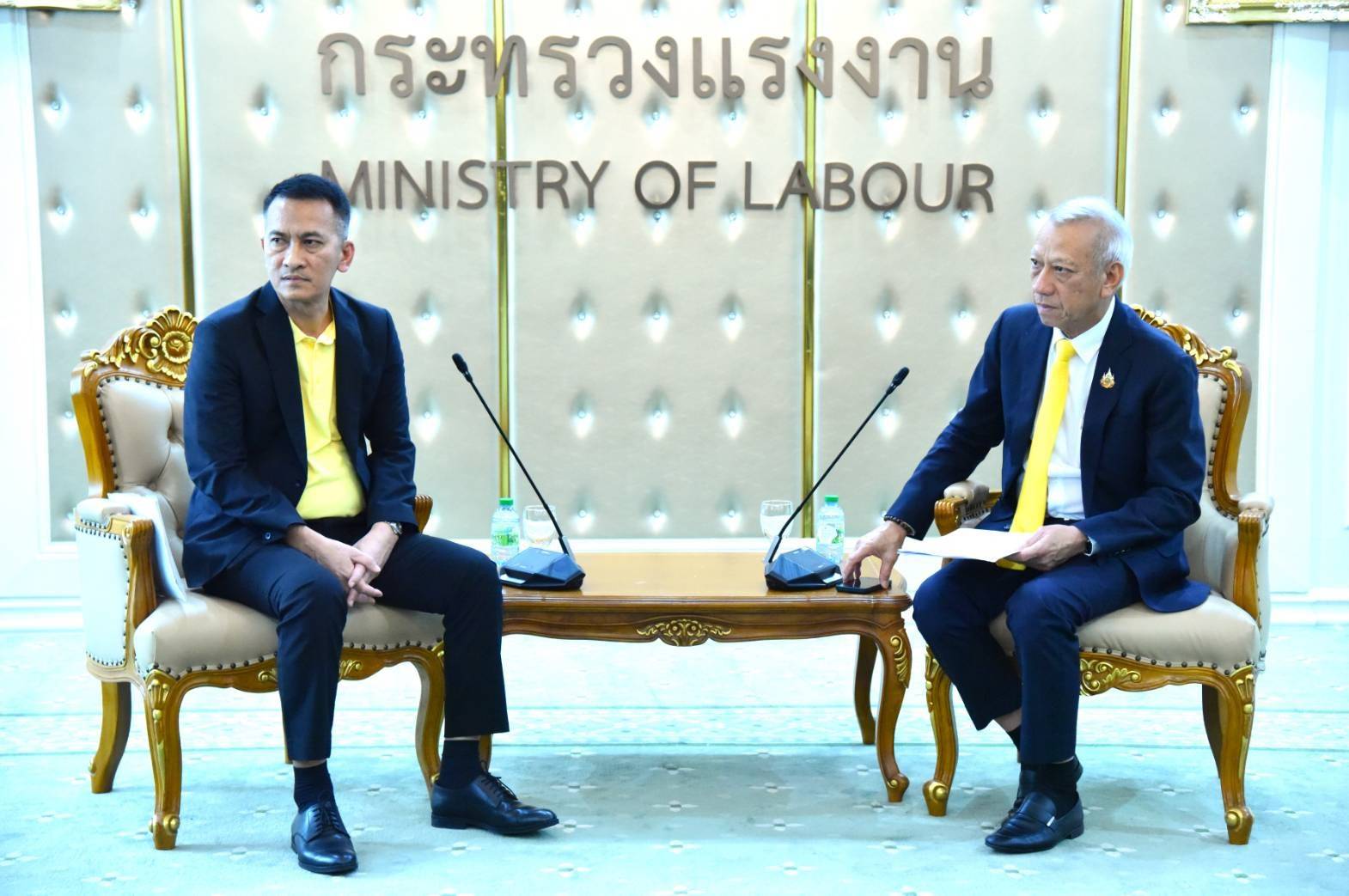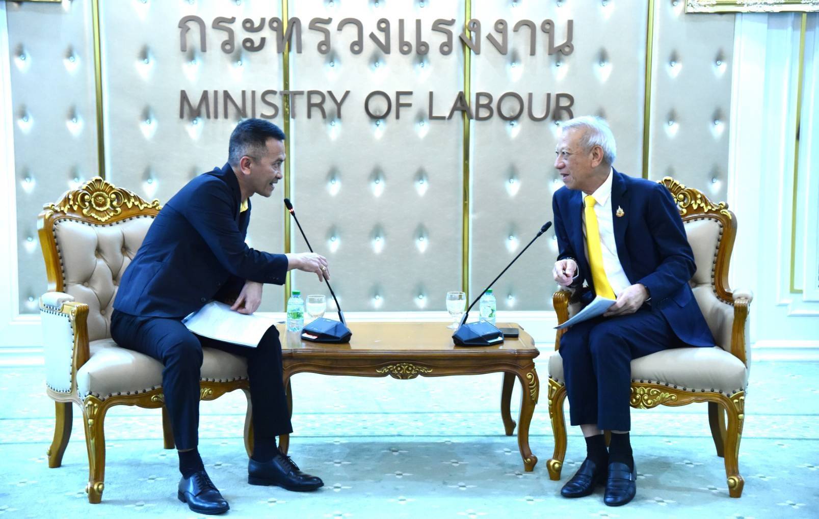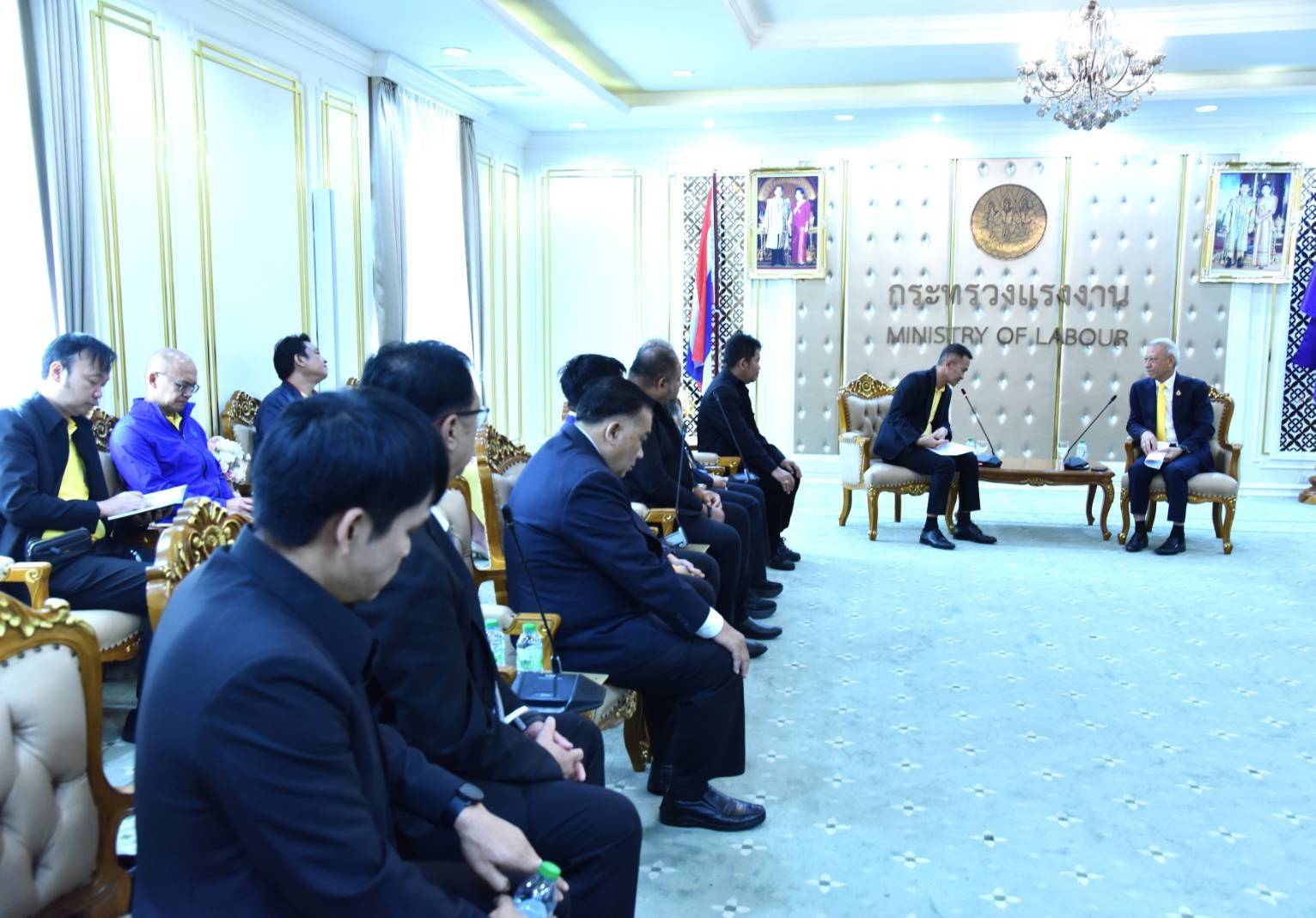 วันที่ 28 ตุลาคม 2567 เวลา 14.00 น. นายพิพัฒน์ รัชกิจประการ รัฐมนตรีว่าการกระทรวงแรงงาน พร้อมด้วย นายสิรภพ ดวงสอดศรี ผู้ช่วยรัฐมนตรีประจำกระทรวงแรงงาน นายอารี ไกรนรา เลขานุการรัฐมนตรีว่าการกระทรวงแรงงาน นายสมาสภ์ ปัทมะสุคนธ์ ผู้ตรวจราชการกระทรวงแรงงาน รักษาราชการแทน รองปลัดกระทรวงแรงงาน เรือเอก สาโรจน์ คมคาย รองปลัดกระทรวงแรงงาน รักษาราชการแทน อธิบดีกรมสวัสดิการและคุ้มครองแรงงาน และผู้บริหาร ให้การต้อนรับ นายอาคม เพ็งจันทร์ ประธานสมาพันธ์สหภาพแรงงาน รัฐวิสาหกิจธนาคารรัฐ (สสธ.)และ ประธานสหภาพแรงงาน ธ.ออมสิน , ธ.เพื่อการเกษตรฯ, ธ.อาคารสงเคราะห์, ธ.อิสลาม ฯ , ธ.พัฒนาวิสาหกิจ ฯ และคณะ ในโอกาสเข้าพบเพื่อเสนอให้ช่วยผลักดัน เรื่องโครงสร้างเงินเดือนและสิทธิ สวัสดิการ ให้กับเจ้าหน้าที่สถาบันการเงิน ของรัฐทั้ง 5 แห่ง ณ ห้องจัตุมงคล ชั้น 6 อาคารกระทรวงแรงงาน