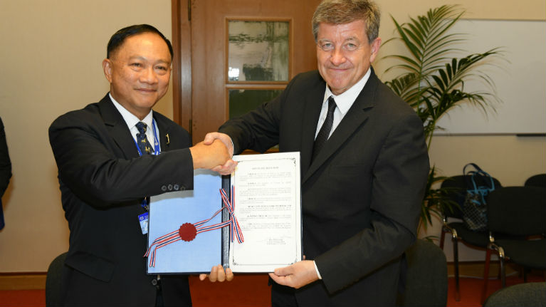 พลตำรวจเอกอดุลย์ แสงสิงแก้ว รัฐมนตรีว่าการกระทรวงแรงงานพบ Mr. Guy Ryder ผู้อำนวยการใหญ่องค์การแรงงานระหว่างประเทศและได้จดทะเบียนให้สัตยาบันพิธีสาร คศ 2014 เสริมอนุสัญญาองค์การแรงงานระหว่างประเทศว่าด้วยแรงงานบังคับ คศ 1930