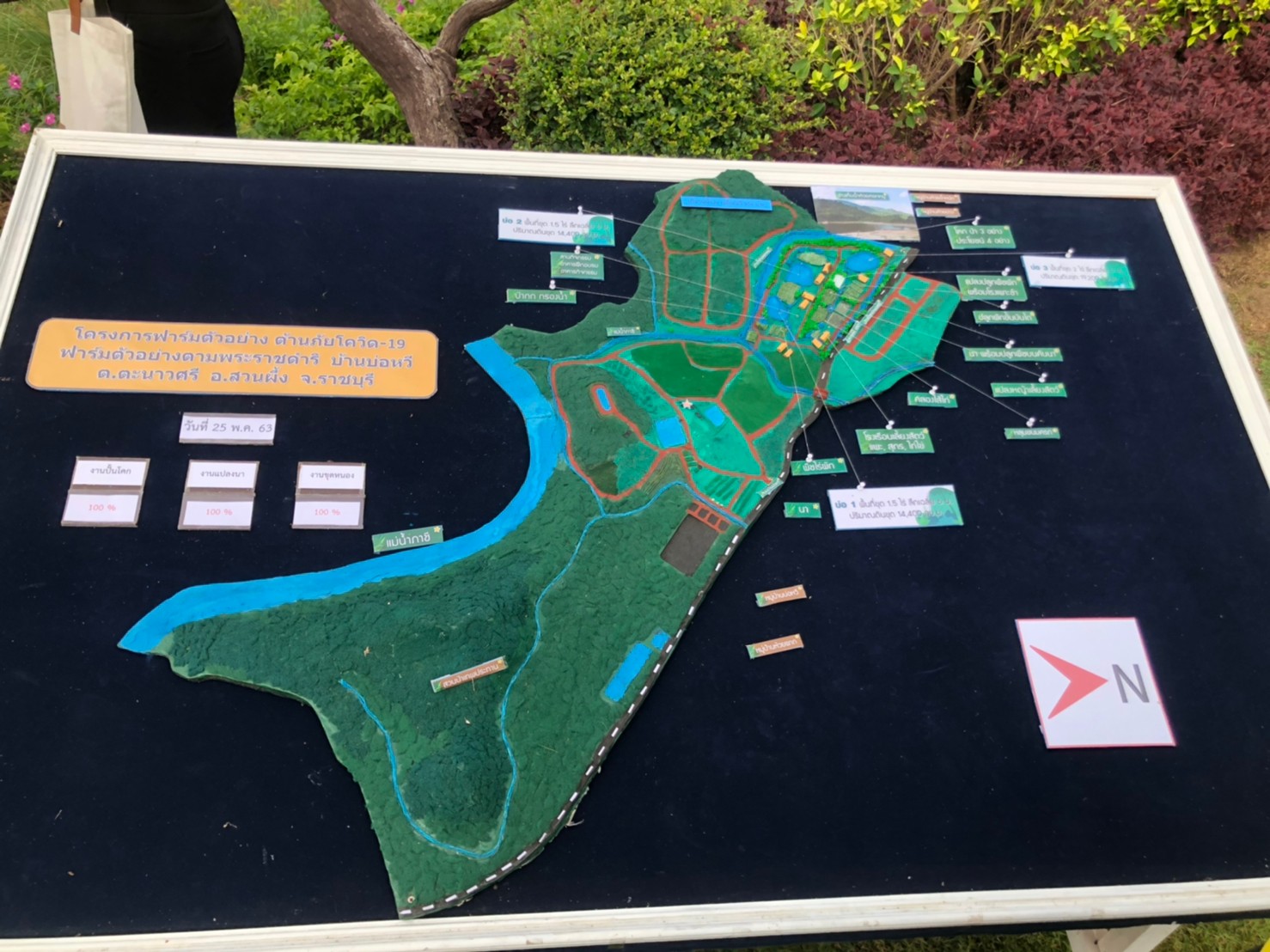 เมื่อวันที่ ๒๖ พฤษภาคม ๒๕๖๓ พล.ร.อ.ปวิตร รุจิเทศ ผู้อำนวยการศูนยอำนวยการใหญ่จิตอาสาพระราชทาน พร้อมด้วย พลโท ธรรมนูญ วิถี แม่ทัพภาคที่ ๑ นางเธียรรัตน์ นะวะมะวัฒน์ รองปลัดกระทรวงแรงงาน และคณะ เดินทางมาตรวจเยี่ยมและมอบแนวทางการดำเนินโครงการฟาร์มตัวอย่าง ต้านภัยโควิด 19 ณ ฟาร์มตัวอย่างฯ บ้านบ่อหวี ตำบลตะนาวศรี อำเภอสวนผึ้ง จังหวัดราชบุรี โดยมีนายชยาวุธ จันทร ผู้ว่าราชการจังหวัดราชบุรี และนายภาณุวัฒน์ เพ็งแป้น แรงงานจังหวัดราชบุรี พร้อมด้วยหัวหน้าส่วนราชการสังกัดกระทรวงแรงงานในพื้นที่จังหวัดราชบุรี และหน่วยงานที่เกี่ยวข้อง ร่วมให้การต้อนรับ