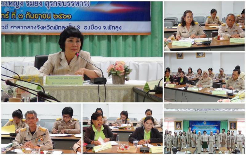 วันจันทร์ ที่ 3 กันยายน 2561 เวลา 09.30 น. พันตำรวจตรีหญิง รมยง สุรกิจบรรหาร ผู้ตรวจราชการกระทรวงแรงงาน ลงพื้นที่จังหวัดพัทลุง ประชุมหัวหน้าส่วนราชการสังกัดกระทรวงแรงงานจังหวัดพัทลุง ติดตามผลการปฏิบัติงานของหน่วยงานสังกัดกระทรวงแรงงาน ตามแผนการตรวจราชการของผู้ตรวจราชการกระทรวงแรงงาน ประจำปีงบประมาณ พ.ศ.2561 เขตตรวจราชการที่ 6 จังหวัดพัทลุง รอบที่ 3 ณ ห้องประชุมอิรวดี ศาลากลางจังหวัดพัทลุง ชั้น 3