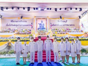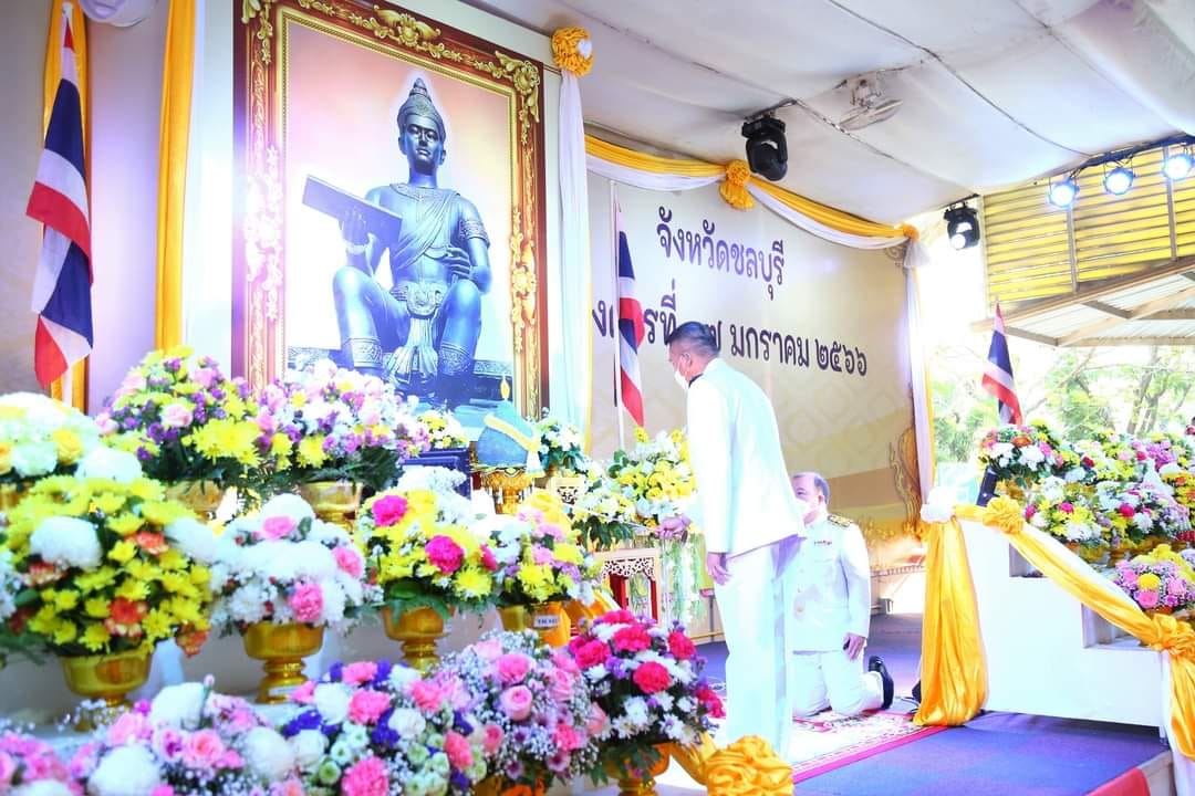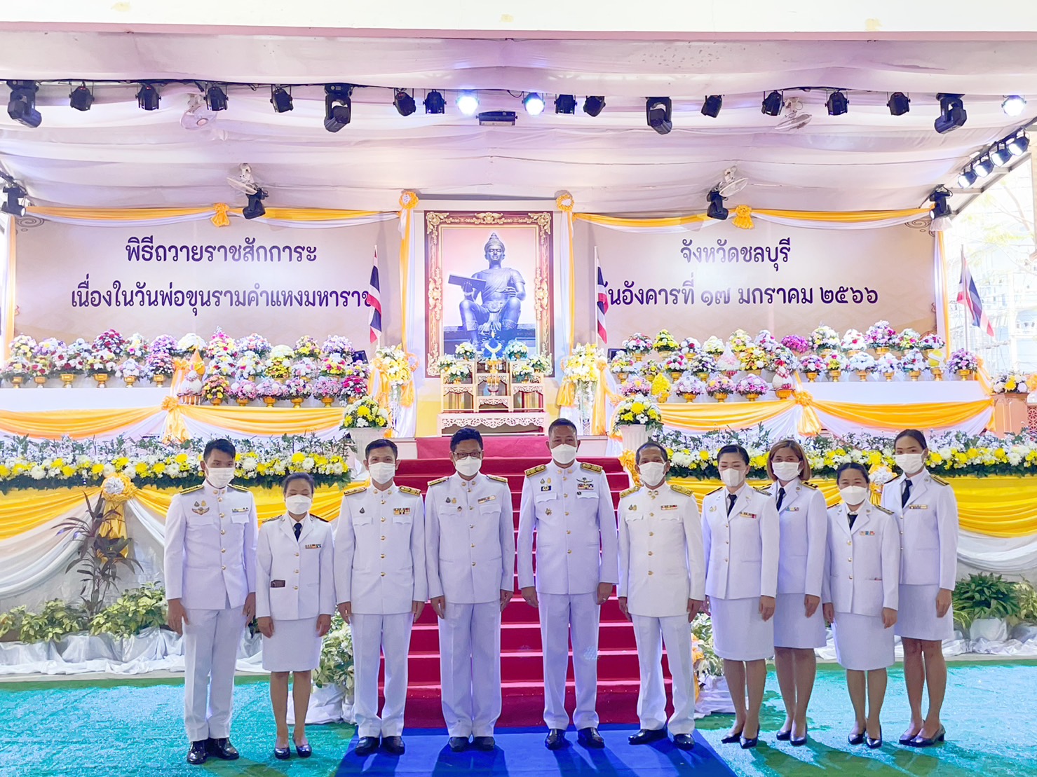 วันอังคารที่ 17 มกราคม ๒๕๖6 เวลา 08.30 น. นายเฉลิมพล เนียมสกุล แรงงานจังหวัดชลบุรี เข้าร่วมพิธีถวายราชสักการะเนื่องในวันพ่อขุนรามคำแหงมหาราช โดยมี นายธวัชชัย ศรีทอง ผู้ว่าราชการจังหวัดชลบุรี เป็นประธานในพิธี พร้อมด้วย รองผู้ว่าราชการจังหวัดชลบุรี หัวหน้าส่วนราชการ ข้าราชการ เข้าร่วมพิธีฯ ทั้งนี้ นายสมหวัง หมอยาดี สดิการและคุ้มครองแรงงานจังหวัดชลบุรี เป็นผู้แทนหน่วยงานสังกัดกระทรวงแรงงานจังหวัดชลบุรี วางพานพุ่มในพิธีดังกล่าว โดยมีผู้แทนหัวหน้าส่วนราชการสังกัดกระทรวงแรงงานฯ เข้าร่วมโดยพร้อมเพรียงกัน ณ ณ อาคารอเนกประสงค์วิทยาการ โรงเรียนชลกันยานุกูล อำเภอเมืองชลบุรี จังหวัดชลบุรี