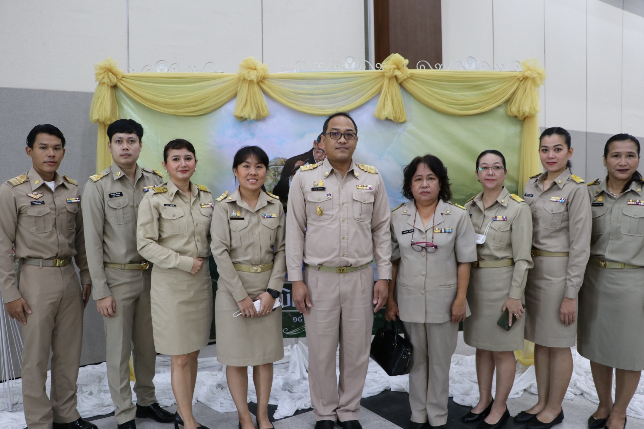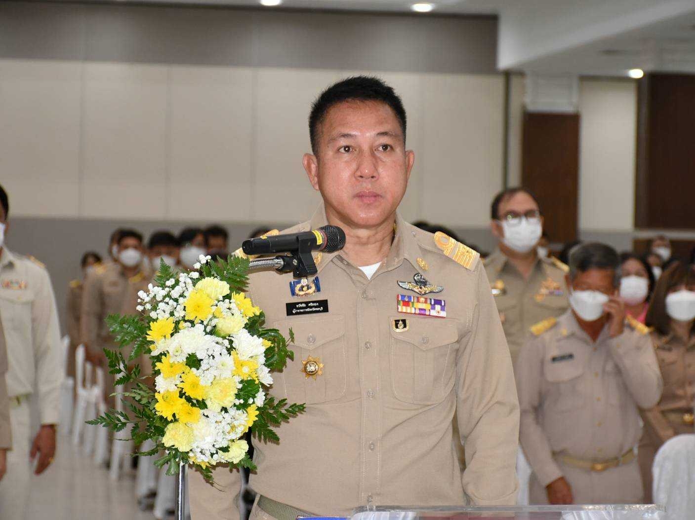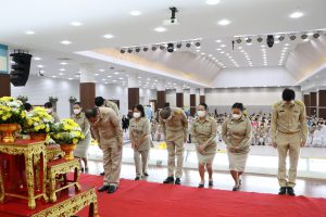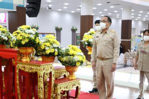วันจันทร์ที่ 14 พฤศจิกายน ๒๕๖๕ เวลา 07.30 น. นางสาวกรจิรัฏฐ์ พงจันทร์ศธร แรงงานจังหวัดชลบุรี มอบหมายให้ นางสาวทิพยรัตน์ พึ่งบุญ ณ อยุธยานักวิชาการแรงงานชำนาญการ เข้าร่วมพิธีถวายเครื่องราชสักการะและวางพานพุ่มดอกไม้สดเนื่องใน “พระบิดาแห่งฝนหลวง” ประจำปี 2565 โดยมี นายธวัชชัย ศรีทอง ผู้ว่าราชการจังหวัดชลบุรี พร้อมด้วย รองผู้ว่าราชการจังหวัดชลบุรี หัวหน้าส่วนราชการ ข้าราชการ เข้าร่วมพิธีฯ ทั้งนี้ นายสราวุธ สุขสวรรค์ ประกันสังคมจังหวัดชลบุรี เป็นผู้แทนหน่วยงานสังกัดกระทรวงแรงงานจังหวัดชลบุรี วางพานพุ่มในพิธีดังกล่าว โดยมีผู้แทนหัวหน้าส่วนราชการสังกัดกระทรวงแรงงานฯ เข้าร่วมโดยพร้อมเพรียงกัน ณ ศาลาประชาคมเทศบาลเมืองบ้านสวน อำเภอเมืองจังหวัดชลบุรี