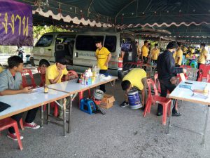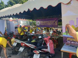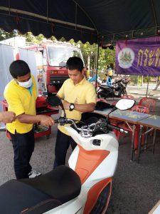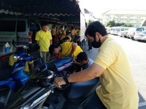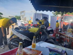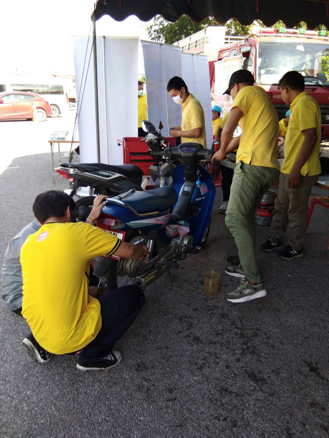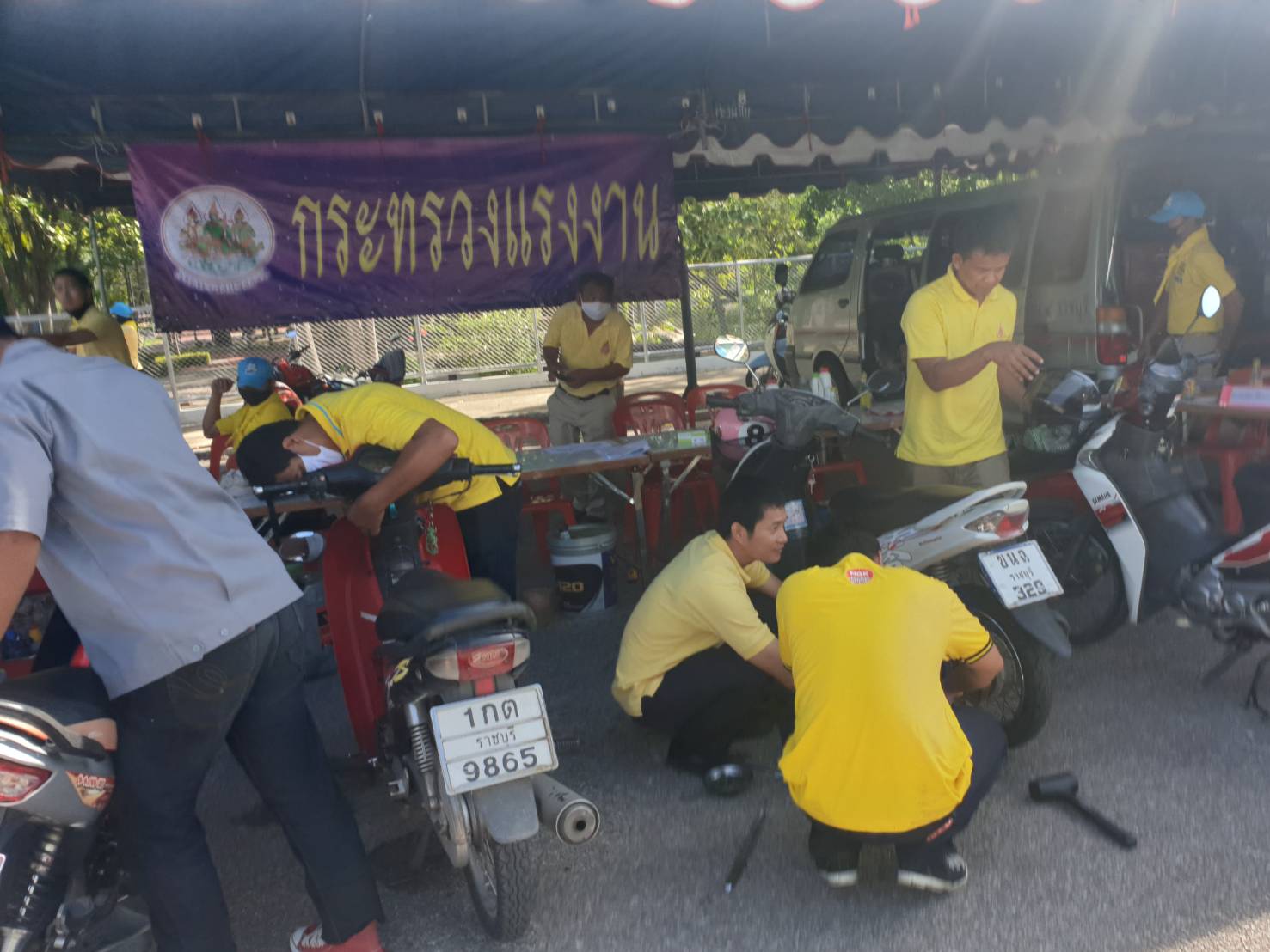 – เวลา ๐๘.๐๐ น. นายภาณุวัฒน์ เพ็งแป้น แรงงานจังหวัดราชบุรี ตรวจเยื่ยมบูธจัดงานวันเฉลิมพระชนมพรรษา ๖๘ พรรษา ๒๘ กรกฎาคม ๒๕๖๓ โดยสถาบันพัฒนาฝีมือแรงงาน ๔ ราชบุรี ให้บริการตรวจสภาพการใช้งานรถจักรยานยนต์ เช่น เปลี่ยนถ่ายน้ำมันเครื่อง ตั้งโซ่ เติมลม ฯลฯ ในนามของกระทรวงแรงงานจังหวัดราชบุรี