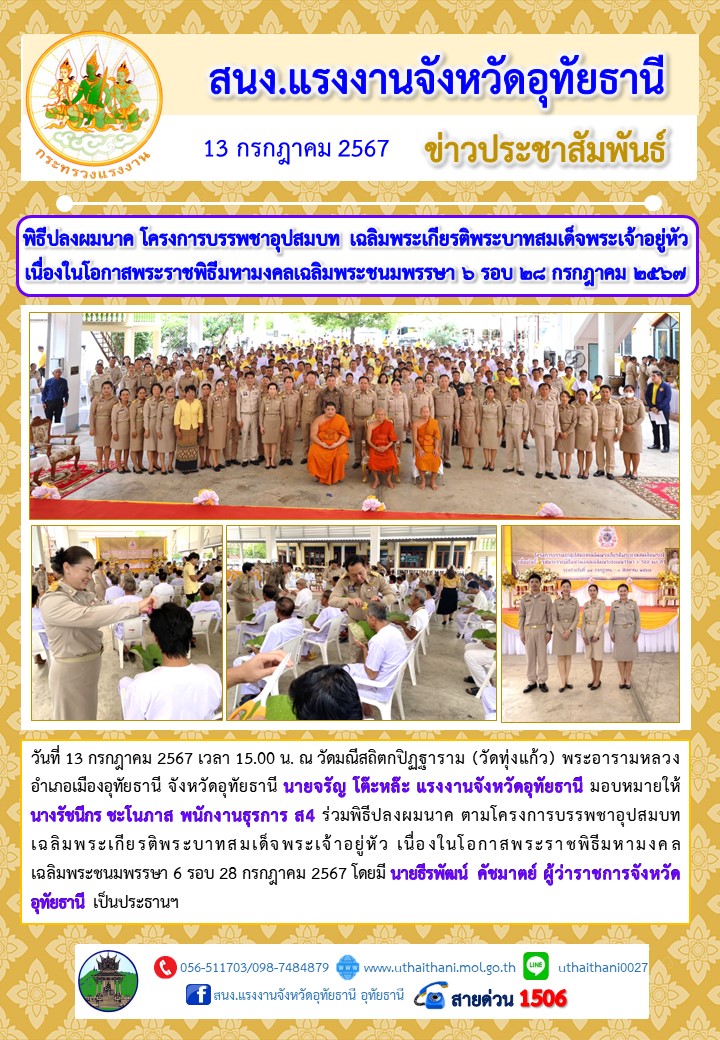 สรจ.อุทัยธานี พิธีปลงผมนาค โครงการบรรพชาอุปสมบท เฉลิมพระเกียรติพระบาทสมเด็จพระเจ้าอยู่หัว เนื่องในโอกาสพระราชพิธีมหามงคลเฉลิมพระชนมพรรษา 6 รอบ 28 กรกฎาคม 2567