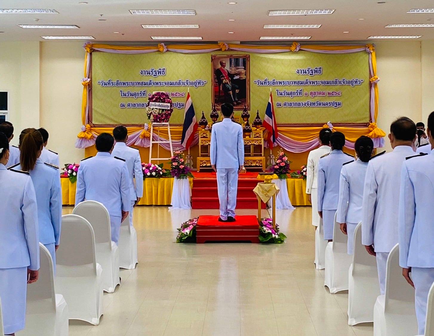 วันที่ 1 ตุลาคม 2564 เวลา 08.45 น. นายสุรศักดิ์ เจริญศิริโชติ ผู้ว่าราชการจังหวัดนครปฐม เป็นประธานพิธีวางพวงมาลาถวายราชสักการะพระบาทสมเด็จพระจอมเกล้าเจ้าอยู่หัว รัชกาลที่ 4 เนื่องในวันที่ระลึกพระบาทสมเด็จพระจอมเกล้าเจ้าอยู่หัว ประจำปี 2564 โดยมี นายกเหล่ากาชาดจังหวัดนครปฐม รองผู้ว่าราชการจังหวัดนครปฐม หัวหน้าส่วนราชการ เข้าร่วมในพิธี