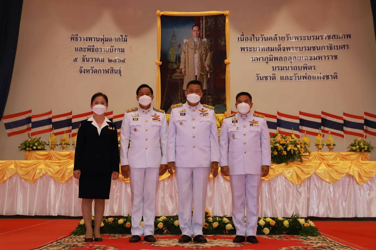 วันอาทิตย์ที่ 5 ธันวาคม 2564 เวลา 08.15 น. นางพนิดา เสถียรจิตร แรงงานจังหวัดกาฬสินธุ์ มอบหมายนายเสมือน ศรีพอ นักวิชาการแรงงานชำนาญการ ร่วมพิธีวางพานพุ่มดอกไม้และพิธีถวายบังคม เนื่องในวันคล้ายวันพระบรมราชสมภพ พระบาทสมเด็จพระบรมชนกาธิเบศร มหาภูมิพลอดุลยเดชมหาราช บรมนาถบพิตร วันชาติ และวันพ่อแห่งชาติ 5 ธันวาคม 2564 โดยมีนายทรงพล ใจกริ่ม ผู้ว่าราชการจังหวัดกาฬสินธุ์ เป็นประธาน ณ หอประชุมจังหวัดกาฬสินธุ์ ศูนย์ราชการจังหวัดกาฬสินธุ์ ถนนเลี่ยงเมืองหัวคู ตำบลกาฬสินธุ์ อำเภอเมืองกาฬสินธุ์ จังหวัดกาฬสินธุ์