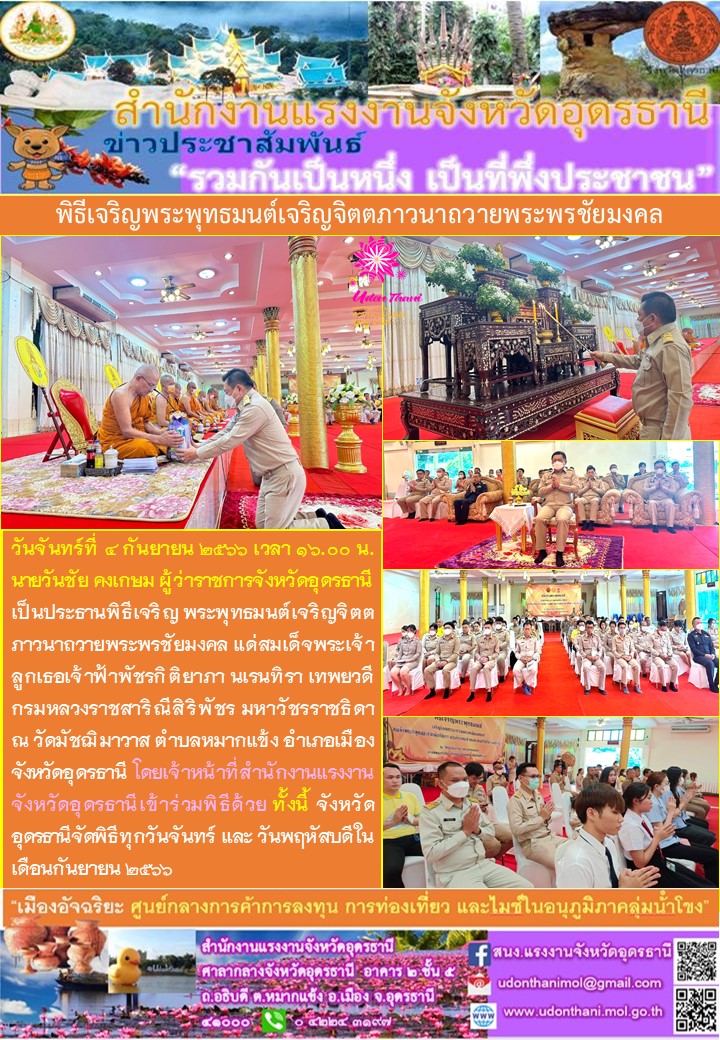 สรจ.อุดรธานี เข้าร่วมพิธีเจริญพระพุทธมนต์เจริญจิตตภาวนาถวายพระพรชัยมงคล