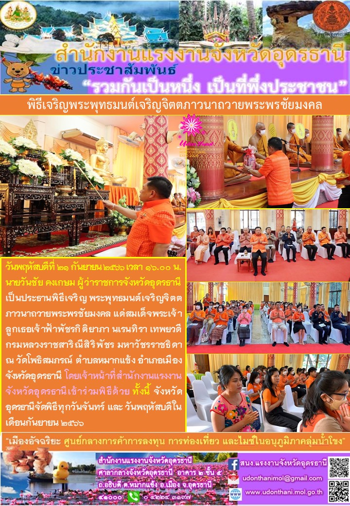 สรจ.อุดรธานี ร่วมพิธีเจริญพระพุทธมนต์เจริญจิตตภาวนาถวายพระพรชัยมงคล