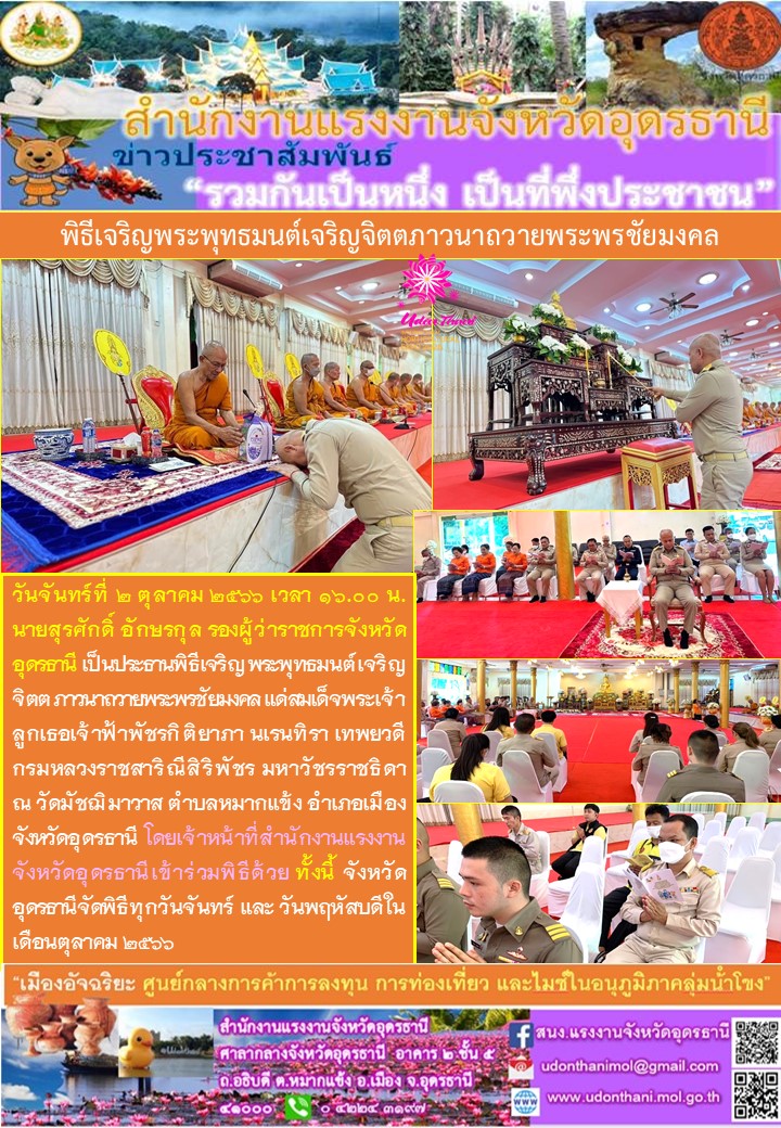สรจ.อุดรธานี ร่วมพิธีเจริญพระพุทธมนต์เจริญจิตตภาวนาถวายพระพรชัยมงคล