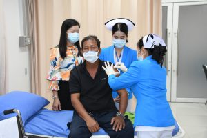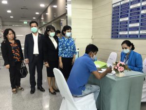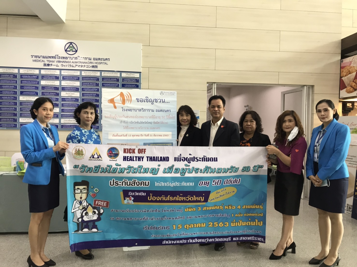 วันที่ 15 ตุลาคม 2563 นางสาวกรจิรัฏฐ์ พงจันทร์ศธร แรงงานจังหวัดชลบุรี พร้อมด้วยหัวหน้าส่วนราชการสังกัดกระทรวงแรงงานจังหวัดชลบุรี ร่วมกิจกรรมเปิดงาน KICK OFF การรณรงค์ฉีดวัคซีนป้องกันโรคไข้หวัดใหญ่ให้ผู้ประกันตนกลุ่มเสี่ยงอายุ 50 ปีขึ้นไป โดยให้การคุ้มครองดูแลผู้ประกันตนมาตรา 33 และมาตรา 39 อายุตั้งแต่ 50ปี ขึ้นไป รับการฉีดวัคซีนป้องกันโรคไข้หวัดใหญ่ ตั้งแต่ 15 ตุลาคม- 31ธันวาคม 2563 โดยมี รองศาสตราจารย์นายแพทย์พิสิษฐ์ พิริยาพรรณ ผู้อำนวยการฝ่ายการแพทย์ฯ และคณะที่ปรึกษารัฐมนตรีว่าการกระทรวงแรงงาน ให้การต้อนรับ ณ โรงพยาบาลวิภาราม อมตะนคร จังหวัดชลบุรี