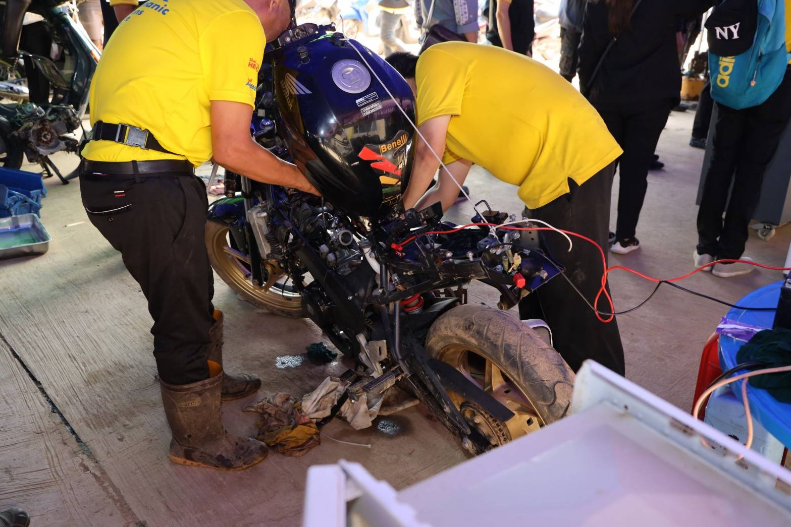 ด้าน นายเดชา พฤกษ์พัฒนรักษ์ รองปลัดกระทรวงแรงงาน รักษาราชการแทนอธิบดีกรมพัฒนาฝีมือแรงงาน กล่าวเพิ่มเติมว่า ในส่วนของกรมพัฒนาฝีมือแรงงานนั้น หลังจากบ้านเรือนประชาชนได้รับความช่วยเหลือในการนำโคลนและทำตวามสะอาดเรียบร้อยแล้ว ได้มอบหมายให้สถาบันพัฒนาฝีมือแรงงานนานาชาติ ร่วมกับ หน่วยงานในสังกัดกรมพัฒนาฝีมือแรงงาน คณะวิทยากรและศิษย์เก่าสถาบันฯ เข้าตรวจเช็คระบบไฟฟ้าภายในบ้าน เปลี่ยนอุปกรณ์ต่างๆ ที่เกี่ยวกับระบบไฟฟ้าภายในอาคารให้สามารถใช้งานได้ปกติและปลอดภัย อีกส่วนที่ยังดำเนินการคือ ให้บริการซ่อมแซมรถจักรยานยนต์และอุปกรณ์เครื่องใช้ไฟฟ้า ที่ชำรุดเสียหายจากภัยน้ำท่วม จมน้ำจมดินโคลน จนถึง 31 ตุลาคม 2567 เพื่อช่วยเหลือแบ่งเบาและบรรเทาความเดือดร้อนให้กับชาวบ้านผู้ประสบภัยน้ำท่วมในพื้นที่ อำเภอแม่สาย ผู้ประสบภัยน้ำท่วมที่มีความประสงค์จะซ่อมแซมรถจักรยานยนต์หรืออุปกรณ์เครื่องใช้ไฟฟ้า ให้มาลงทะเบียนซ่อมแซม พร้อมกับเตรียมบัตรประชาชน หรือหลักฐานอื่นๆ เพื่ออ้างอิง ณ ที่ทำการกองทุนหมู่บ้าน (ศูนย์ลูกเสือ) หมู่ที่ 8 บ้านป่ายาง ตำบลแม่สาย อำเภอแม่สาย จังหวัดเชียงราย สามารถติดต่อสอบถามเพิ่มเติม โทรศัพท์ 083-1461456 คุณภพ