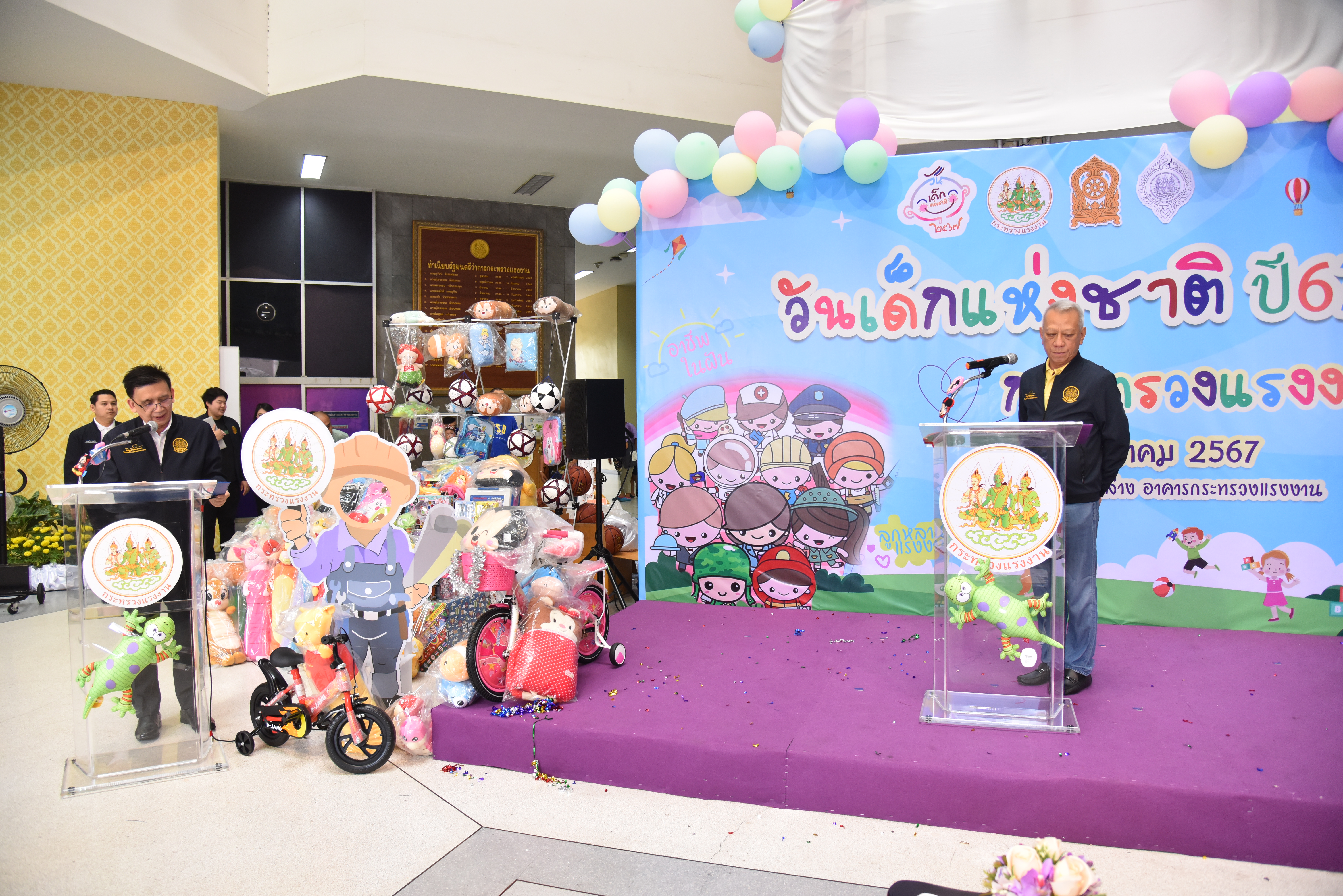วันที่ 13 มกราคม 2567 เวลา 09.00 น. นายพิพัฒน์ รัชกิจประการ รัฐมนตรีว่าการกระทรวงแรงงาน เป็นประธานกล่าวเปิดงานและให้โอวาทเนื่องในงานวันเด็กแห่งชาติ พร้อมมอบทุนการศึกษา มอบของขวัญแก่เด็ก และเยี่ยมชมบูธกิจกรรมของสถานประกอบกิจการและหน่วยงานในสังกัดกระทรวงแรงงาน โดยมี นายไพโรจน์ โชติกเสถียร ปลัดกระทรวงแรงงาน กล่าวรายงาน พร้อมด้วยผู้บริหาร ข้าราชการกระทรวงแรงงาน พ่อแม่ผู้ปกครอง น้องๆ เด็กชุมชนแฟลตดินแดง ลูกหลานของพี่น้องแรงงาน เข้าร่วมงาน อย่างเนืองแน่น ณ บริเวณโถงชั้นล่าง อาคารกระทรวงแรงงาน ถนนมิตรไมตรี เขตดินแดง กรุงเทพฯ