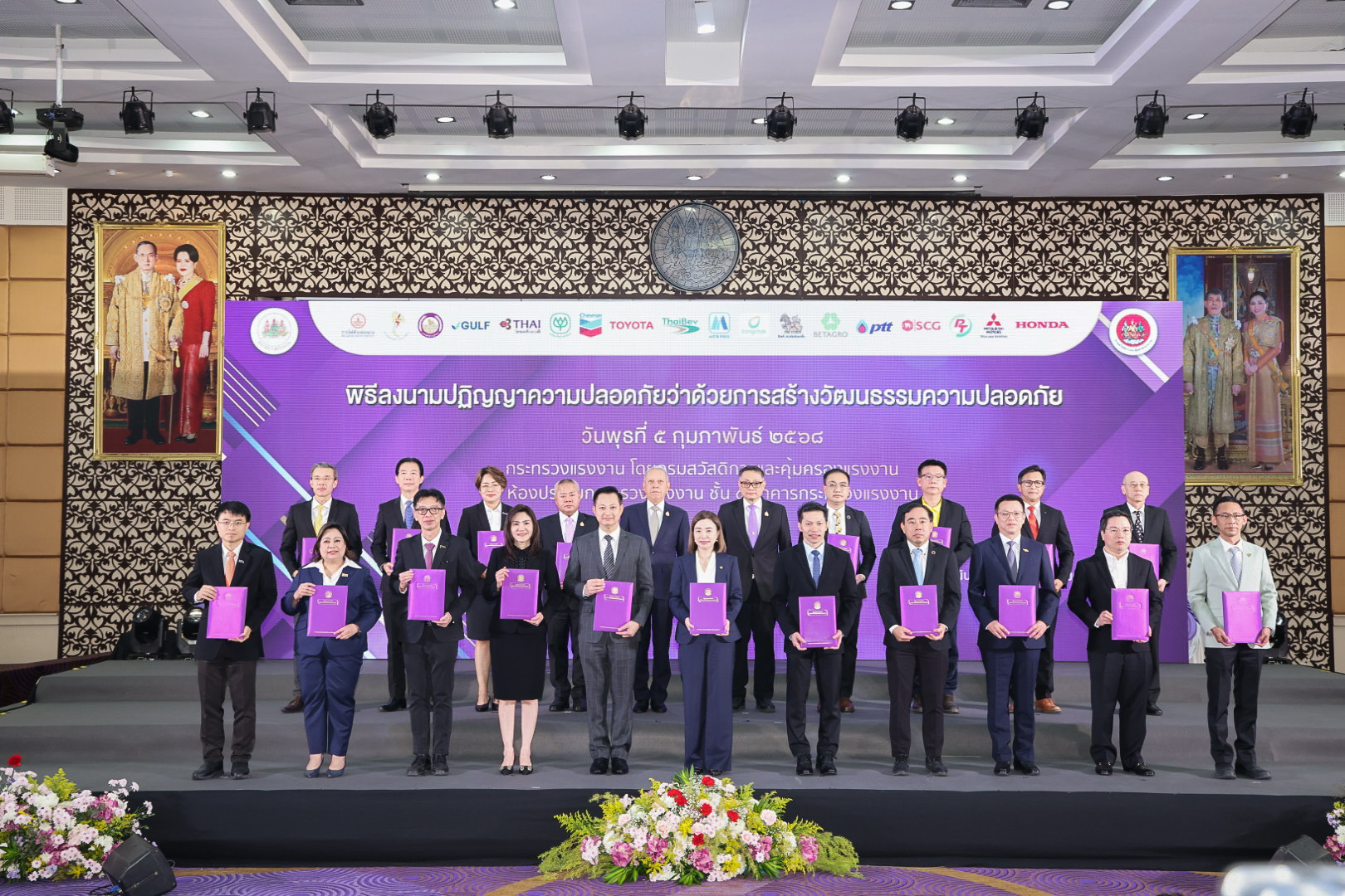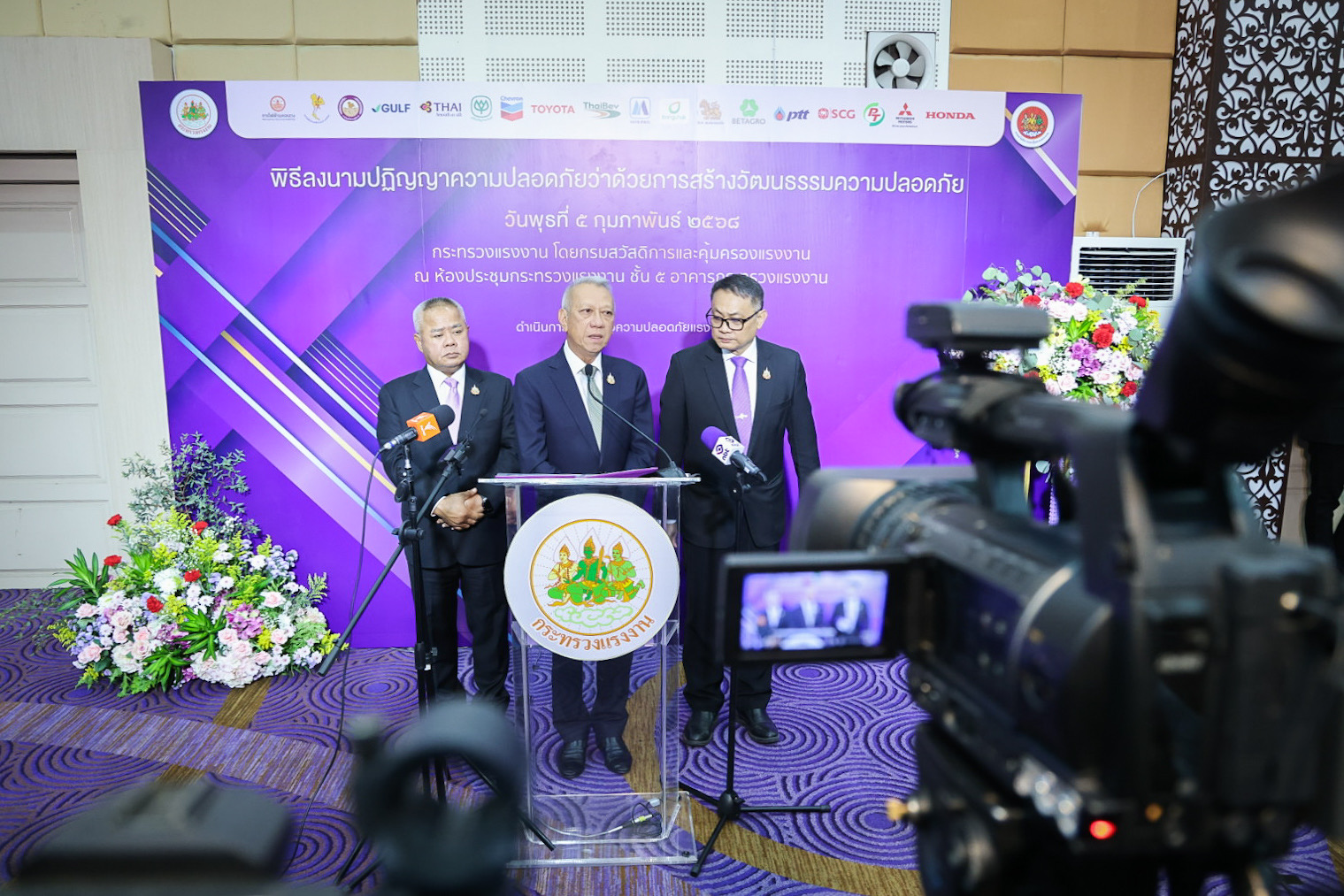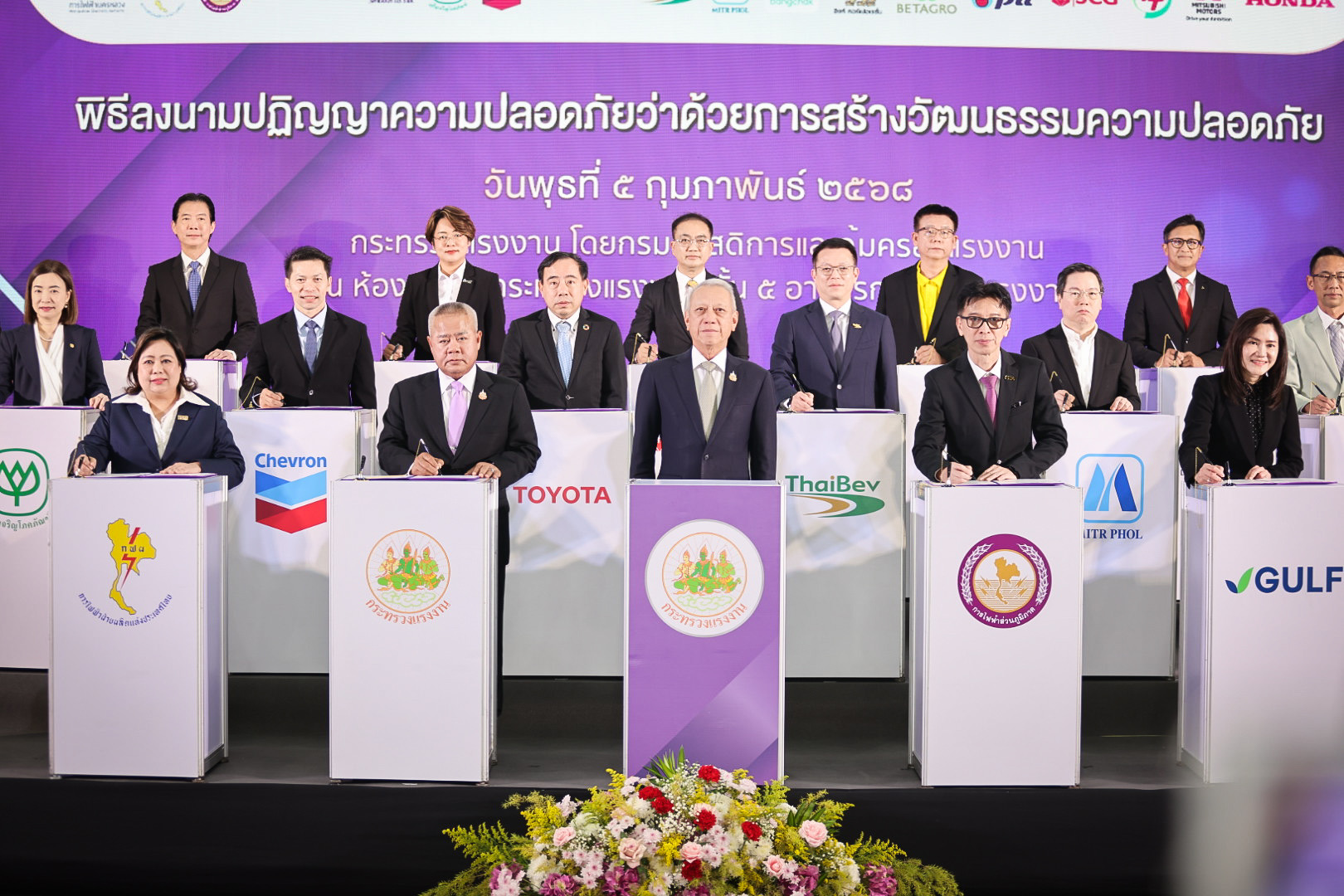 วันที่ 5 กุมภาพันธ์ 2568 นายพิพัฒน์ รัชกิจประการ รัฐมนตรีว่าการกระทรวงแรงงาน เป็นประธานและสักขีพยานในพิธีลงนามปฏิญญาความปลอดภัยว่าด้วยการสร้างวัฒนธรรมความปลอดภัย ระหว่างกระทรวงแรงงาน กับผู้บริหารสถานประกอบกิจการ 18 แห่ง โดยมี นายบุญสงค์ ทัพชัยยุทธ์ ปลัดกระทรวงแรงงาน พร้อมด้วยผู้บริหารกระทรวงแรงงาน ร่วมเป็นเกียรติ ณ ห้องประชุมกระทรวงแรงงาน ชั้น 5 เพื่อร่วมขับเคลื่อนแคมเปญ “Safety Culture Together” ตั้งเป้าลดอัตราการประสบอันตรายจากการทำงาน กรณีร้ายแรงให้เหลือไม่เกิน 1 ต่อ 1,000 คน และกรณีเสียชีวิต ให้เหลือไม่เกิน 3 ต่อ 100,000 คน ในปี 2573