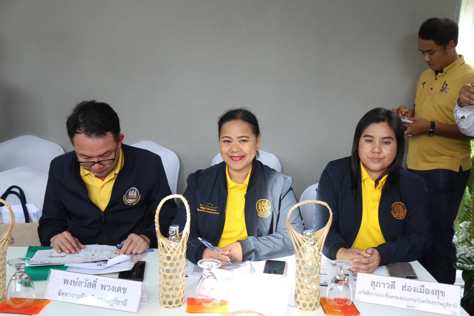 และการลงพื้นที่ จ.สุราษฎร์ธานี ในกิจกรรมครั้งนี้ กระทรวงแรงงานได้ สนับสนุนการแสดงผลิตภัณฑ์จากกลุ่มอาสาสมัครแรงงานและแรงงานอิสระในพื้นที่ ซึ่งเป็นกลุ่มที่ได้รับการส่งเสริม ให้มีอาชีพเสริม เพิ่มรายได้และพัฒนาทักษะในการประกอบอาชีพ ได้แก่