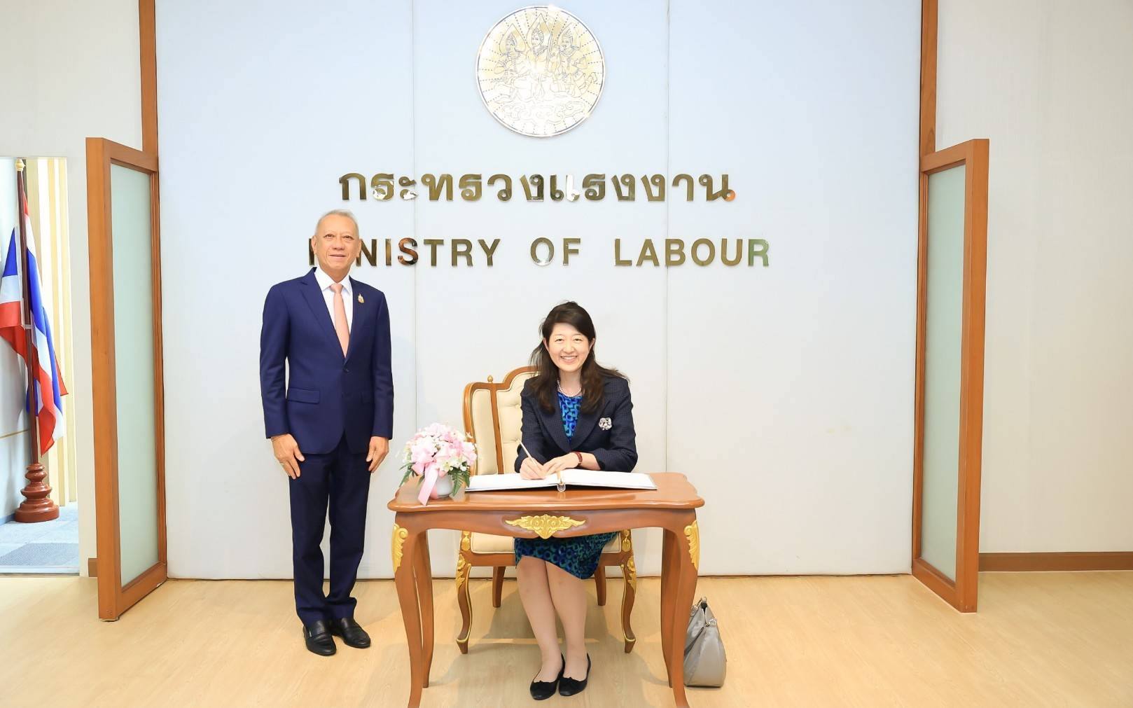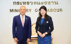 ด้านคุณคาโอริ นากามูระ – โอซากะ (Ms. Kaori Nakamura – Osaka) ผู้อำนวยการสำนักงานแรงงานระหว่างประเทศประจำภูมิภาคเอเชียและแปซิฟิก กล่าวเพิ่มเติมว่า ขอขอบคุณท่านรัฐมนตรีฯ ในวันนี้ และขอให้คำสัญญาว่าเราจะให้การสนับสนุนรัฐบาลไทย และให้การสนับสนุนกระทรวงแรงงานในการดำเนินการต่างๆ ซึ่งไทยมีพลวัตขับเคลื่อนมากและสามารถเป็นผู้นำในภูมิภาคเอเชียได้ และขอบคุณไทยที่ร่วมก่อตั้ง ILO มาและมีความสัมพันธ์ที่แน่นแฟ้น ซึ่งประทับใจที่ไทยให้สัตยาบันในอนุสัญญา ILO ในสถานการณ์ปัจจุบันมีความท้าทายมากมาย เช่น เพศ แรงงานนอกระบบ แรงงานสูงอายุ ทั้งนี้ ILO ยืนยันที่จะทำงานร่วมกับไทยในประเด็นต่างๆ ในส่วนของการเข้าเป็นสมาชิก OECD นั้น การที่ไทยได้เข้าร่วมจะเป็นประโยชน์ทั้งประเทศไทยและOECD ซึ่งยินดีให้การสนับสนุน ขอให้ท่านพิจารณาเข้าร่วมเป็นสมาชิก เครือข่ายความร่วมมือระหว่างประเทศว่าด้วยความยุติธรรมทางสังคม (Social Coalition for Social Justice)