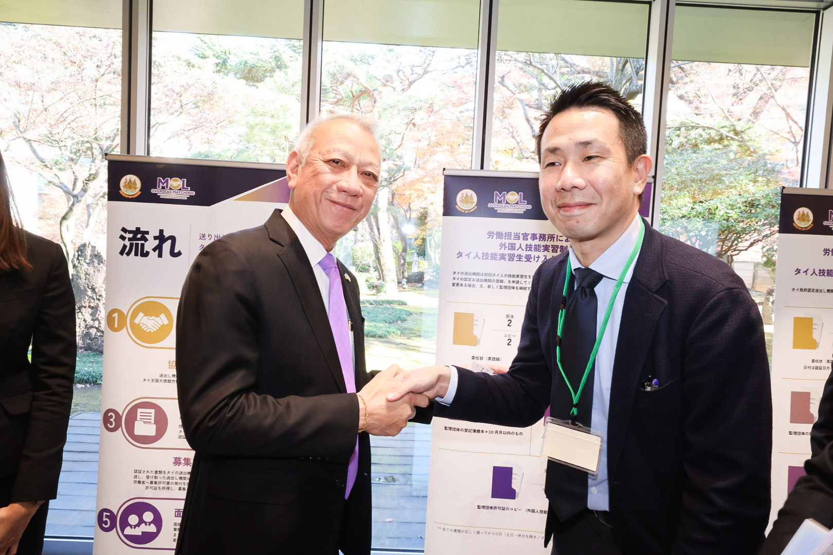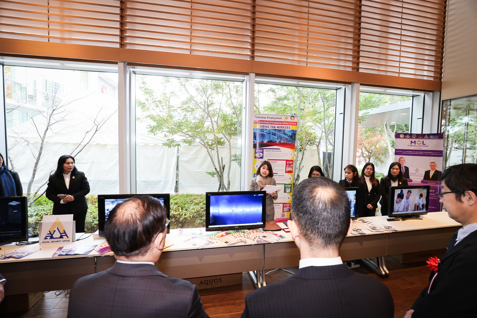 ด้าน นายบุญสงค์ ทัพชัยยุทธ์ ปลัดกระทรวงแรงงาน กล่าวเพิ่มเติมว่า กระทรวงแรงงานพร้อมจัดส่งแรงงานตามคุณสมบัติ ที่นายจ้างญี่ปุ่นต้องการ ทั้งนี้ญี่ปุ่นมีความต้องการแรงงานทักษะเฉพาะ (SSW) ใน 16 สาขา เช่นงานภาคบริการ ช่างทาสี ก่อสร้าง ภาคอุตสาหกรรม ผลิตอาหารเป็นต้น กว่า 820,000 คน โดยกรมพัฒนาฝีมือแรงงานจะฝึกอบรมทักษะด้านต่าง ๆ ที่หลากหลาย เพื่อรองรับความต้องการของนายจ้างรวมทั้งทดสอบมาตรฐานฝีมือแห่งชาติ กรมสวัสดิการและคุ้มครองแรงงาน และสถาบันส่งเสริมความปลอดภัย อาชีวอนามัย และสภาพแวดล้อมในการทำงาน (องค์การมหาชน) จะดูแลมาตรฐานการทำงาน และความปลอดภัยในการทำงาน นอกจากนี้ สำนักงานประกันสังคมจะดูแลผู้ประกันตน ซึ่งมีทั้งคนไทย และคนต่างชาติ รวมทั้งชาวญี่ปุ่นที่ไปทำงานในประเทศไทย โดยเราพร้อมให้การสนับสนุน อำนวยความสะดวก และ เรามีสำนักงานแรงงานในต่างประเทศสำหรับให้คำปรึกษา/แนะนำเรื่องการทำงานในประเทศญี่ปุ่น
