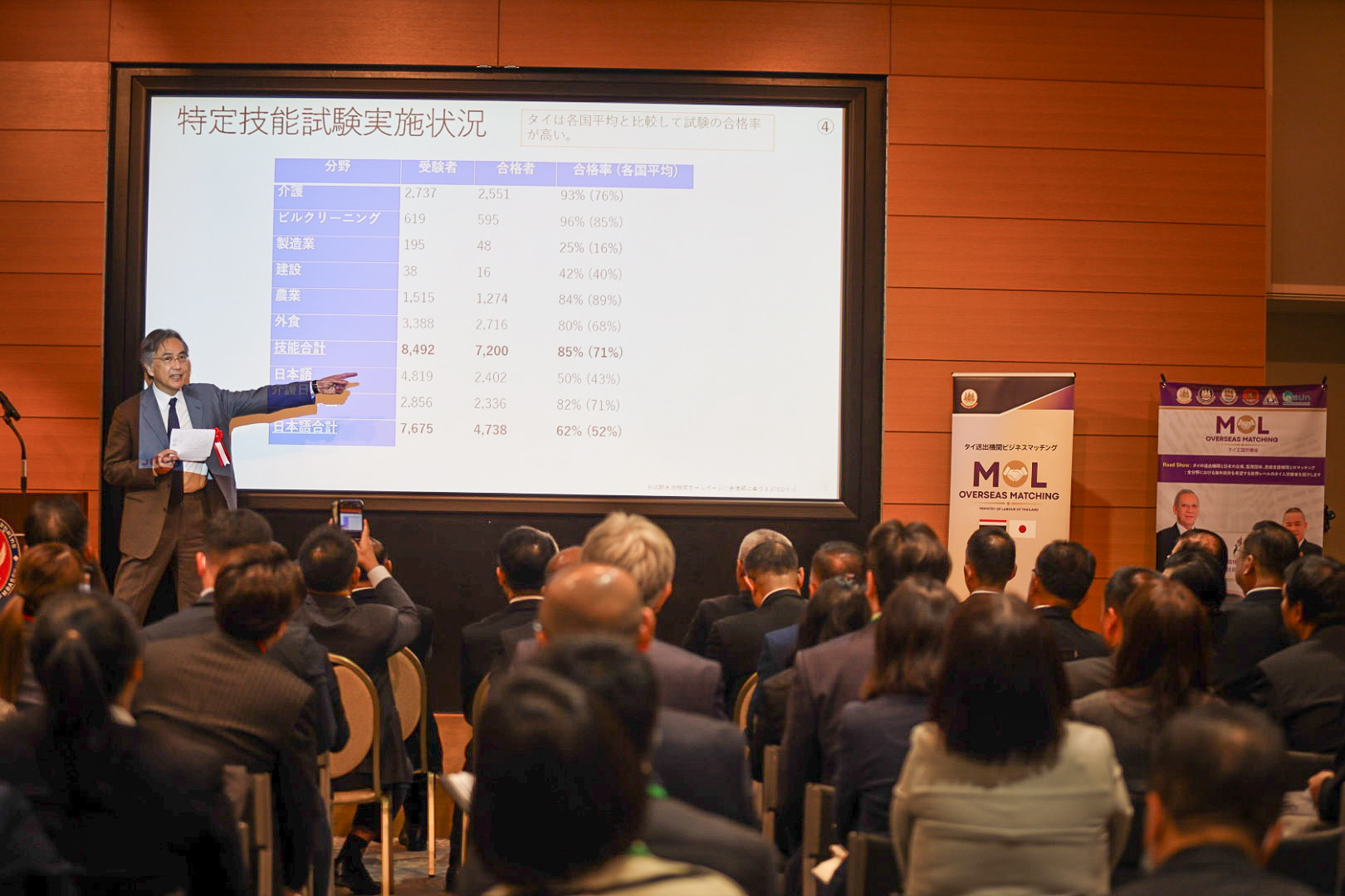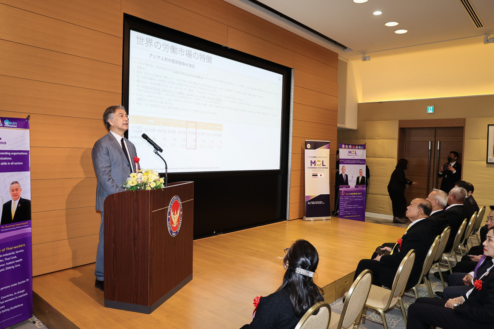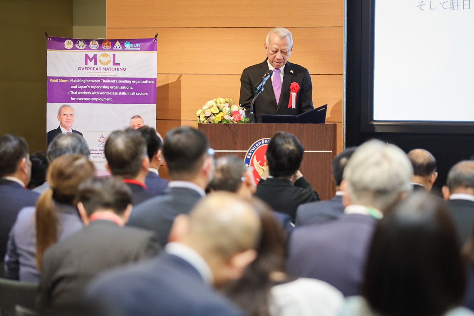 นายพิพัฒน์ รัชกิจประการ รัฐมนตรีว่าการกระทรวงแรงงาน กล่าวว่า วันนี้ กระทรวงแรงงาน ทำ Roadshow ในต่างประเทศ โดยมีเป้าหมายในการขยายตลาดแรงงานไทย เพิ่มโอกาสในการทำงานในต่างประเทศ ในทักษะฝีมือที่ตรงกับความต้องการ และได้รับสวัสดิการที่เหมาะสม โครงการ “MOL Overseas Matching” ซึ่งจัดขึ้นโดยสำนักงานแรงงานในประเทศญี่ปุ่น มีวัตถุประสงค์เพื่อส่งเสริมให้องค์กรผู้ส่งของไทยและองค์กรกำกับดูแลของญี่ปุ่นที่มาเข้าร่วมงานได้มีโอกาสพบปะเจรจาระหว่างกัน ตลอดจนกระบวนการจัดส่งผู้ฝึกปฏิบัติงานด้านเทคนิค/แรงงานไทย และการรับรองเอกสารการจ้างงาน โดยทุกหน่วยงานในสังกัดกระทรวงแรงงานยังได้ร่วมออกบูธนำเสนภารกิจที่สำคัญในการสนับสนุนการขยายตลาดแรงงานเชิงรุกด้วย ซึ่งการจัดงานในครั้งนี้จะทำให้มีการจ้างงานแรงงานไทยถูกต้องตามกฎหมายและตามความต้องการ/เงื่อนไขของนายจ้างญี่ปุ่น และเกิดผลสัมฤทธิ์ที่จะก่อให้เกิดประโยชน์ซึ่งกันและกัน สอดรับต่อความต้องการของทั้งฝ่ายไทยและญี่ปุ่นเป็นการยกระดับกระชับความสัมพันธ์ระหว่างไทยและญี่ปุ่นในประเด็นความร่วมมือด้านแรงงานให้มีความแน่นแฟ้นยิ่งขึ้น ต่อไป