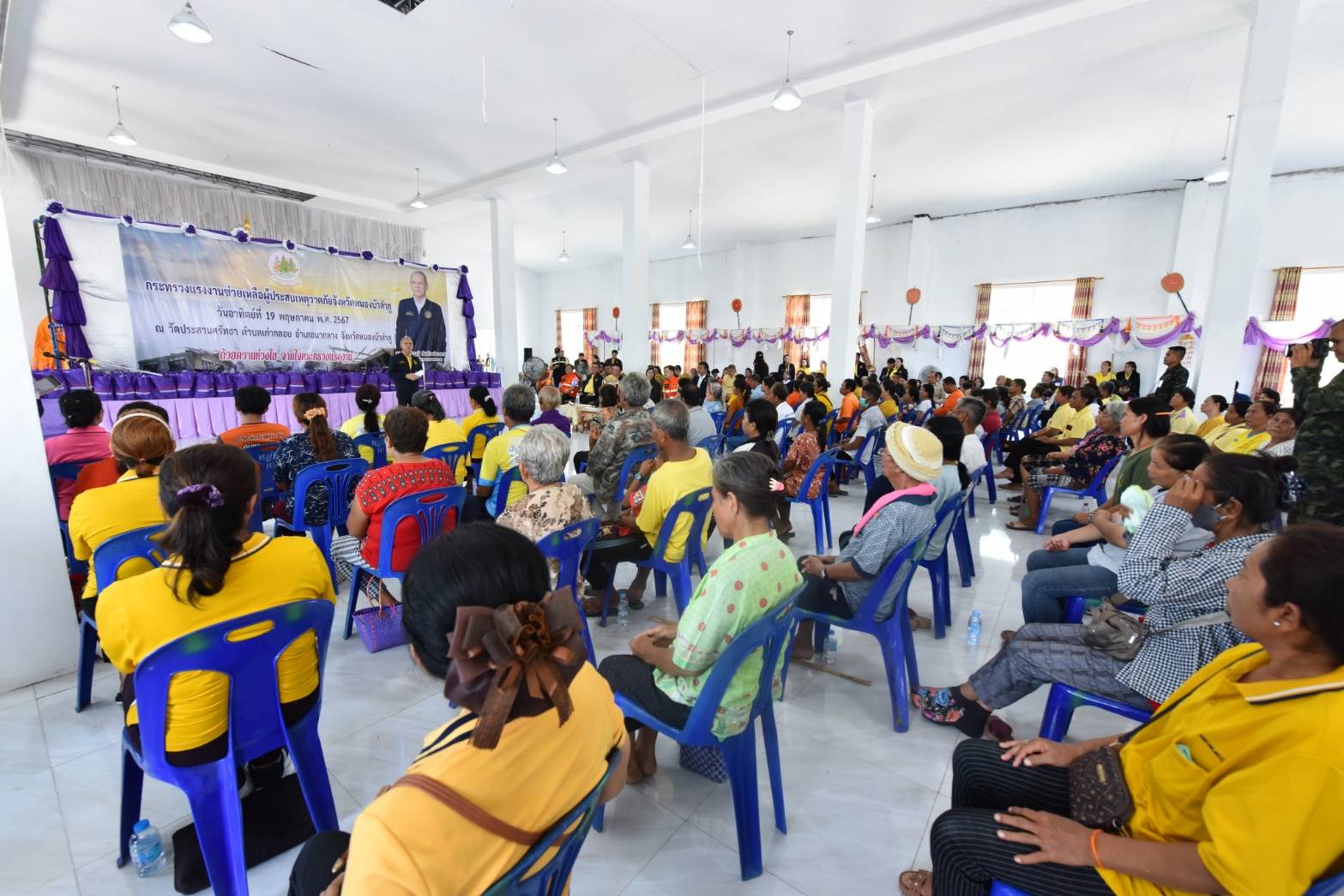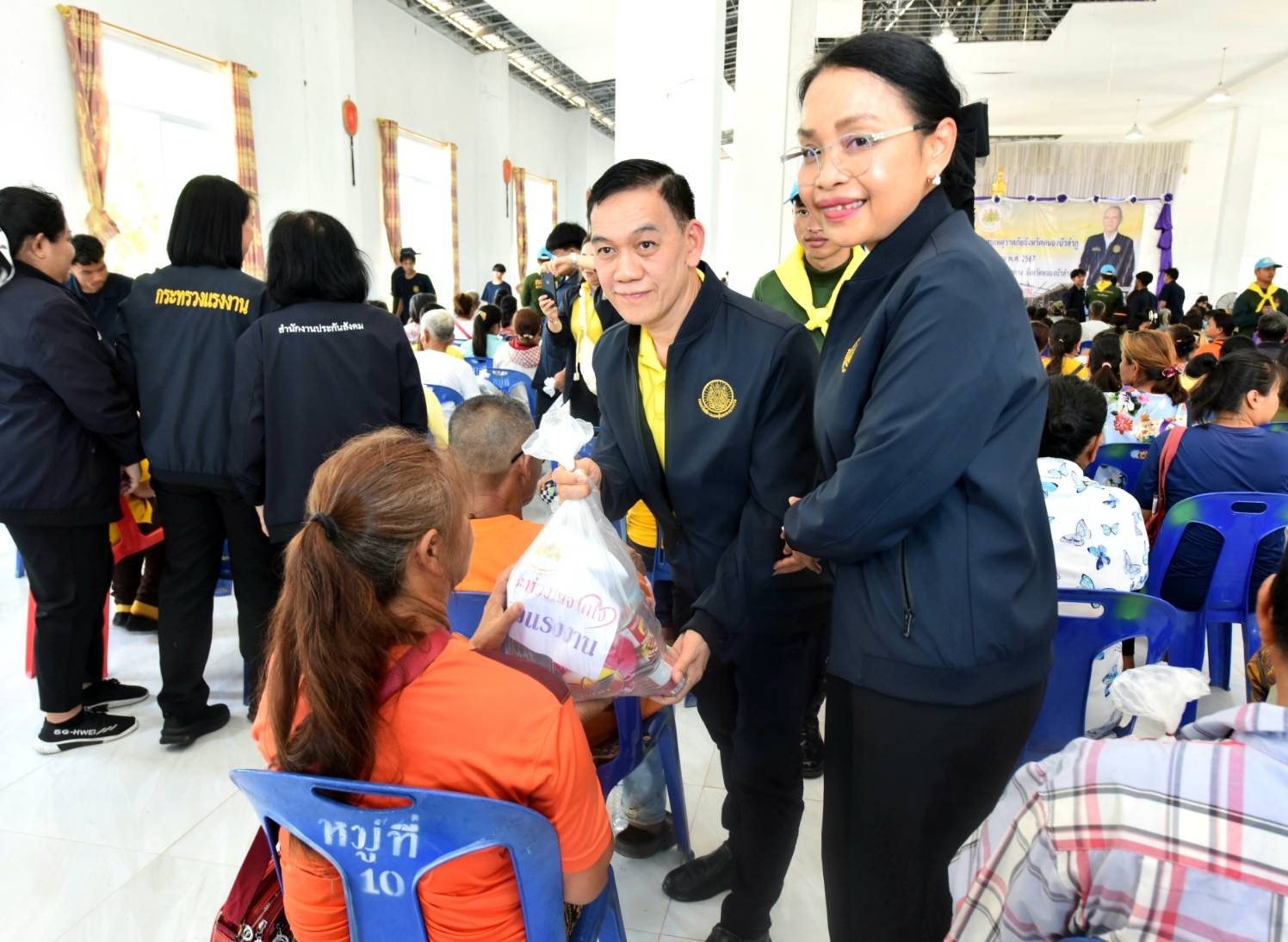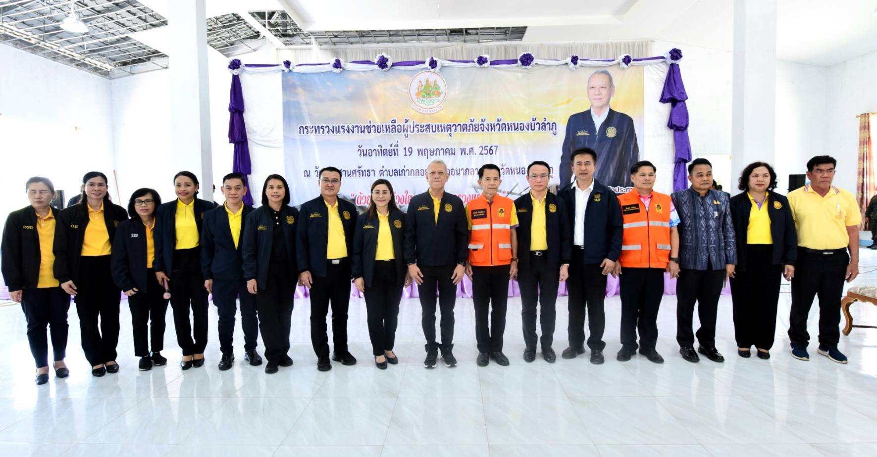 วัันที่ 19 พฤษภาคม 2567 นายพิพัฒน์ รัชกิจประการ รัฐมนตรีว่าการกระทรวงแรงงาน และคณะ ลงพื้นที่เยี่ยมเยือนให้กำลังใจ และมอบถุงยังชีพ จำนวน 203 ถุง ให้แก่ผู้ประสบวาตภัยในพื้นที่อำเภอนากลาง จังหวัดหนองบัวลำภู ในการนี้มีเครือข่ายสถานประกอบกิจการร่วมมอบถุงยังชีพจำนวน 100 ถุงด้วย โดยมี นางสาวบุปผา เรืองสุด อธิบดีกรมพัฒนาฝีมือแรงงาน นายสมชาย มรกตศรีวรรณ อธิบดีกรมการจัดหางาน นายสันติ นันตสุวรรณ ผู้ตรวจราชการกระทรวงแรงงาน พร้อมด้วยผู้บริหารระดับสูงกระทรวงแรงงาน หัวหน้าส่วนราชการหน่วยงานสังกัดกระทรวงแรงงานจังหวัดหนองบัวลำภู เข้าร่วม นายสุวิทย์ จันทร์หวร ผู้ว่าราชการจังหวัดหนองบัวลำภู ผู้นำชุมชน และประชาชนในพื้นที่ ร่วมให้การต้อนรับ ณ วัดประสานศรัทธา ตำบลเก่ากลอย อำเภอนากลาง จังหวัดหนองบัวลำภู