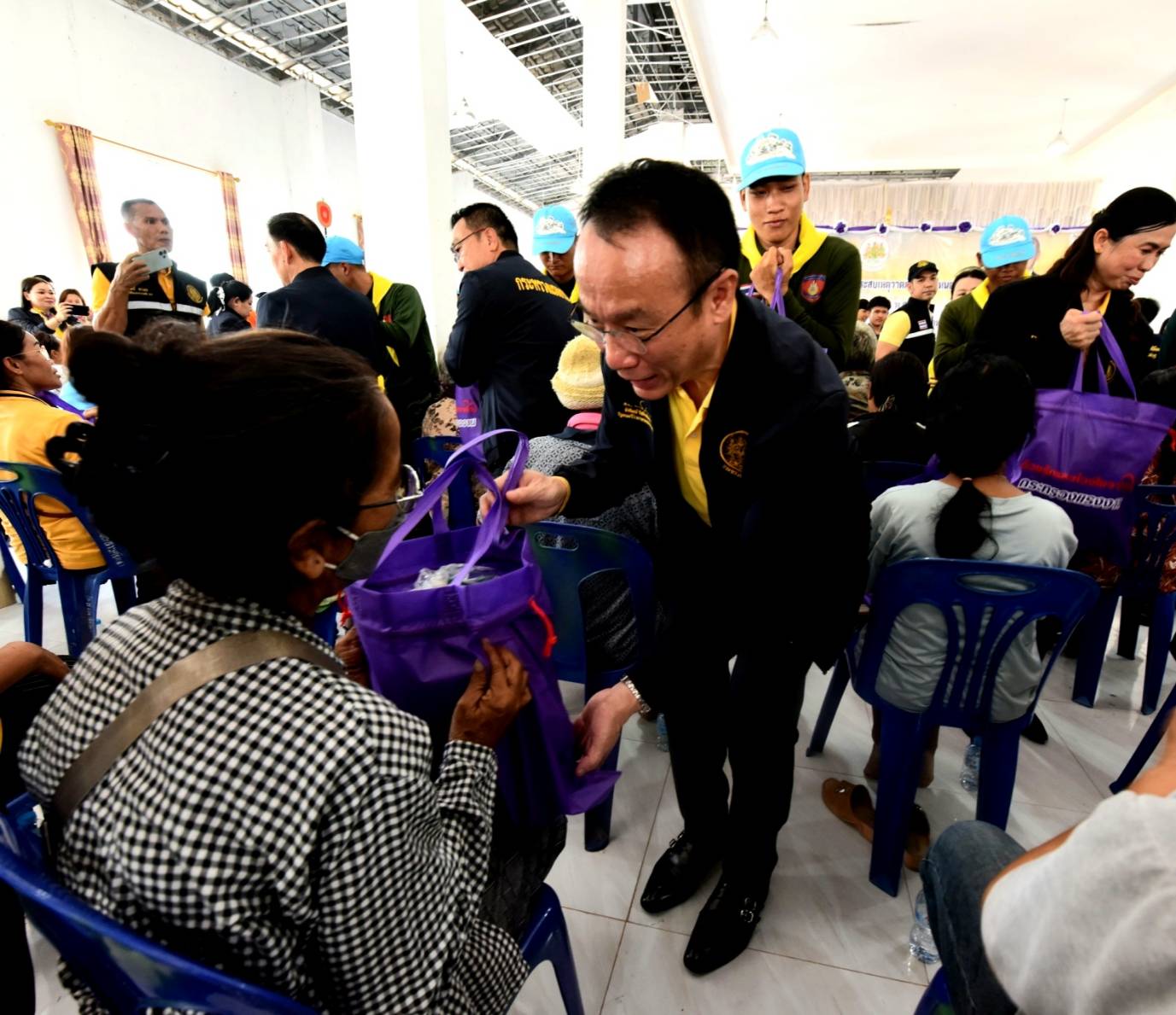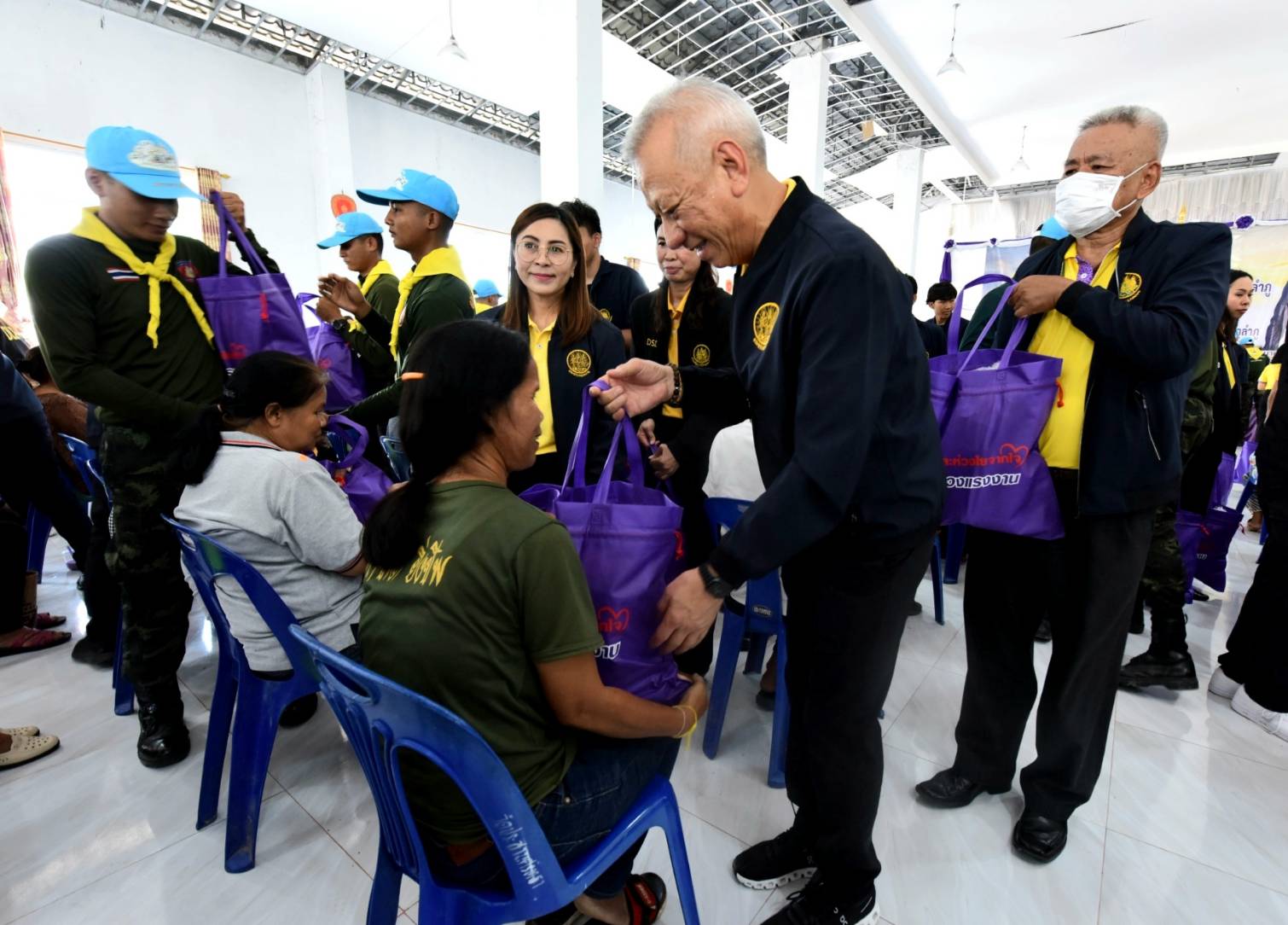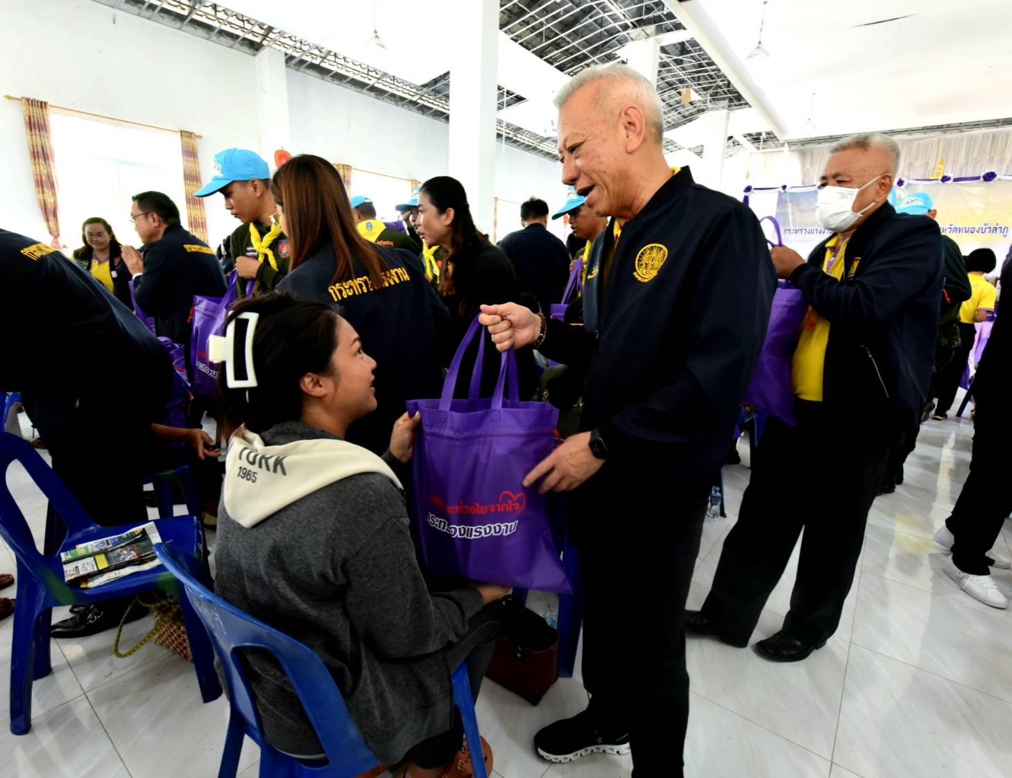 วัันที่ 19 พฤษภาคม 2567 นายพิพัฒน์ รัชกิจประการ รัฐมนตรีว่าการกระทรวงแรงงาน และคณะ ลงพื้นที่เยี่ยมเยือนให้กำลังใจ และมอบถุงยังชีพ จำนวน 203 ถุง ให้แก่ผู้ประสบวาตภัยในพื้นที่อำเภอนากลาง จังหวัดหนองบัวลำภู ในการนี้มีเครือข่ายสถานประกอบกิจการร่วมมอบถุงยังชีพจำนวน 100 ถุงด้วย โดยมี นางสาวบุปผา เรืองสุด อธิบดีกรมพัฒนาฝีมือแรงงาน นายสมชาย มรกตศรีวรรณ อธิบดีกรมการจัดหางาน นายสันติ นันตสุวรรณ ผู้ตรวจราชการกระทรวงแรงงาน พร้อมด้วยผู้บริหารระดับสูงกระทรวงแรงงาน หัวหน้าส่วนราชการหน่วยงานสังกัดกระทรวงแรงงานจังหวัดหนองบัวลำภู เข้าร่วม นายสุวิทย์ จันทร์หวร ผู้ว่าราชการจังหวัดหนองบัวลำภู ผู้นำชุมชน และประชาชนในพื้นที่ ร่วมให้การต้อนรับ ณ วัดประสานศรัทธา ตำบลเก่ากลอย อำเภอนากลาง จังหวัดหนองบัวลำภู