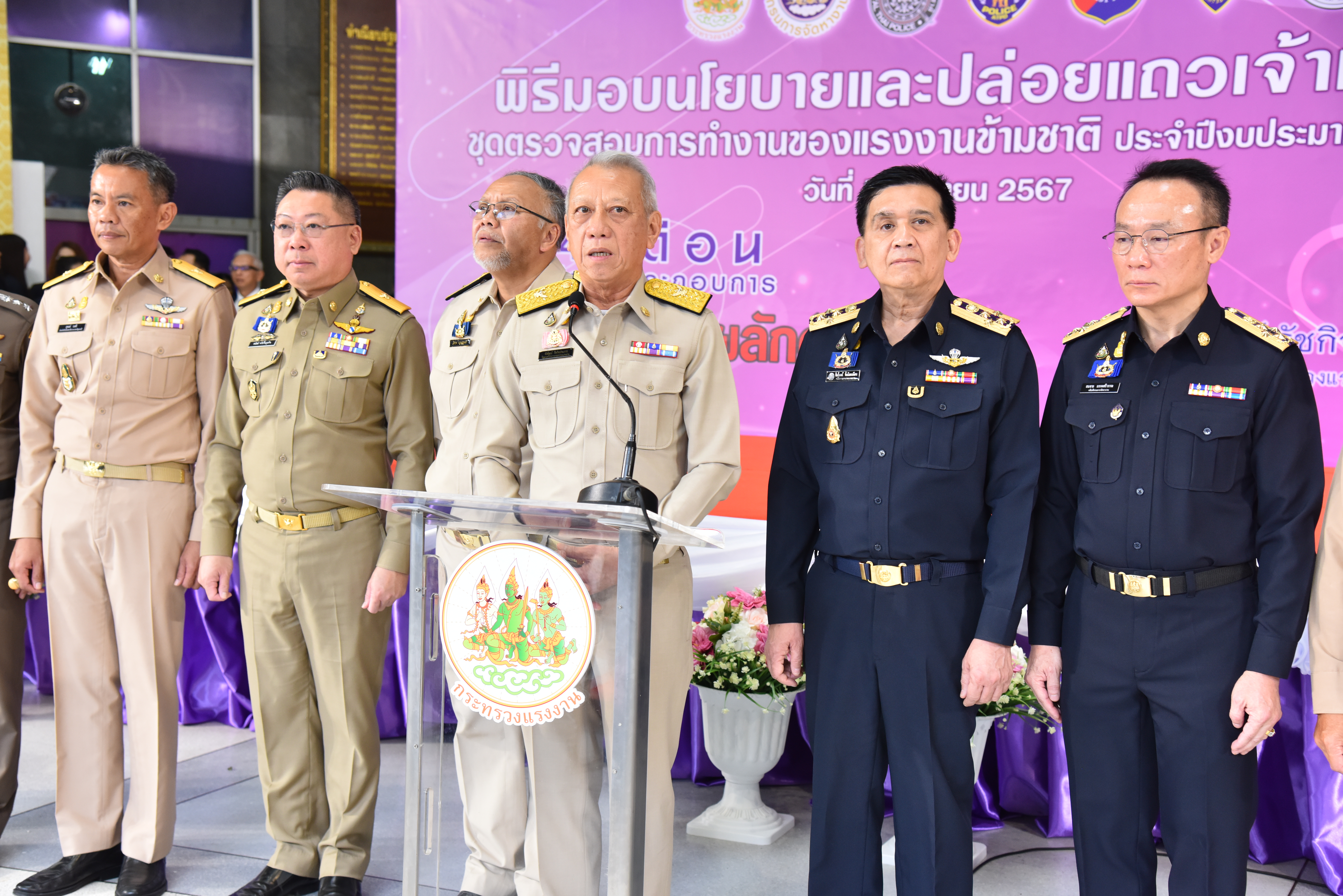 วันที่ 5 มิถุนายน 2567 นายพิพัฒน์ รัชกิจประการ รัฐมนตรีว่าการกระทรวงแรงงาน เป็นประธานในพิธีมอบนโยบายและปล่อยแถวเจ้าหน้าที่ด้านการตรวจสอบการทำงานของแรงงานข้ามชาติ ประจำปีงบประมาณ พ.ศ. 2567 ณ บริเวณลานพระพุทธสุทธิธรรมบพิตร อาคารกระทรวงแรงงาน โดยมีนายสมชาย มรกตศรีวรรณ อธิบดีกรมการจัดหางาน กล่าวรายงาน นายสิรภพ ดวงสอดศรี ผู้ช่วยรัฐมนตรีประจำกระทรวงแรงงาน นายธนัสถ์ ทวีเกื้อกูลกิจ ที่ปรึกษารัฐมนตรีว่าการกระทรวงแรงงาน นายภุชงค์ วรศรี ประจำสำนักเลขาธิการนายกรัฐมนตรี นายไพโรจน์ โชติกเสถียร ปลัดกระทรวงแรงงาน นายเดชา พฤกษ์พัฒนรักษ์ รองปลัดกระทรวงแรงงาน ผู้บริหารระดับสูงกระทรวงแรงงาน และผู้แทนจากสำนักงานตรวจคนเข้าเมือง กองบัญชาการตำรวจท่องเที่ยว กองบังคับการปราบปรามการค้ามนุษย์ และกองอำนวยการรักษาความมั่นคงภายในกรุงเทพมหานคร ร่วมเป็นเกียรติในพิธี
