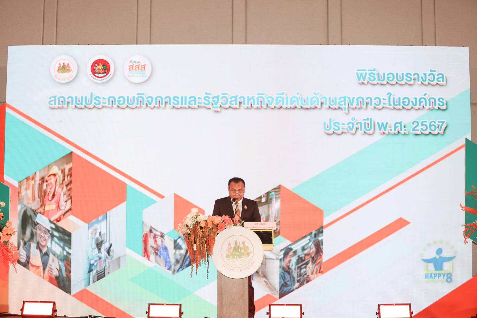 วันที่ 8 สิงหาคม 2567 นายพิพัฒน์ รัชกิจประการ รัฐมนตรีว่าการกระทรวงแรงงาน มอบหมายให้ นายอารี ไกรนรา เลขานุการรัฐมนตรีว่าการกระทรวงแรงงาน เป็นประธานมอบรางวัลสถานประกอบกิจการและรัฐวิสาหกิจดีเด่นด้านสุขภาวะในองค์กร จำนวน 29 แห่ง ภายใต้โครงการความร่วมมือกับ สสส. มุ่งผลักดันให้เป็นกลไกต้นแบบสร้างสันติสุขในสังคมแรงงาน นางโสภา เกียรตินิรชา อธิบดีกรมสวัสดิการและคุ้มครองแรงงาน กล่าวรายงานวัตถุประสงค์การจัดงาน โดยมี นายวรรณรัตน์ ศรีสุขใส รองปลัดกระทรวงแรงงาน นายเดชา พฤกษ์พัฒนรักษ์ รองปลัดกระทรวงแรงงาน เรือเอก สาโรจน์ คมคาย รองปลัดกระทรวงแรงงาน นางนภสร ทุ่งสุกใส ที่ปรึกษาวิชาการแรงงาน นางสาวกรจิรัฏฐ์ พงจันทร์ศธร ผู้ช่วยปลัดกระทรวงแรงงาน พร้อมด้วยผู้บริหารระดับสูงกระทรวงแรงงานร่วมเป็นเกียรติ ณ โรงแรมอัศวิน แกรนด์ คอนเวนชั่น เขตหลักสี่ กรุงเทพมหานคร