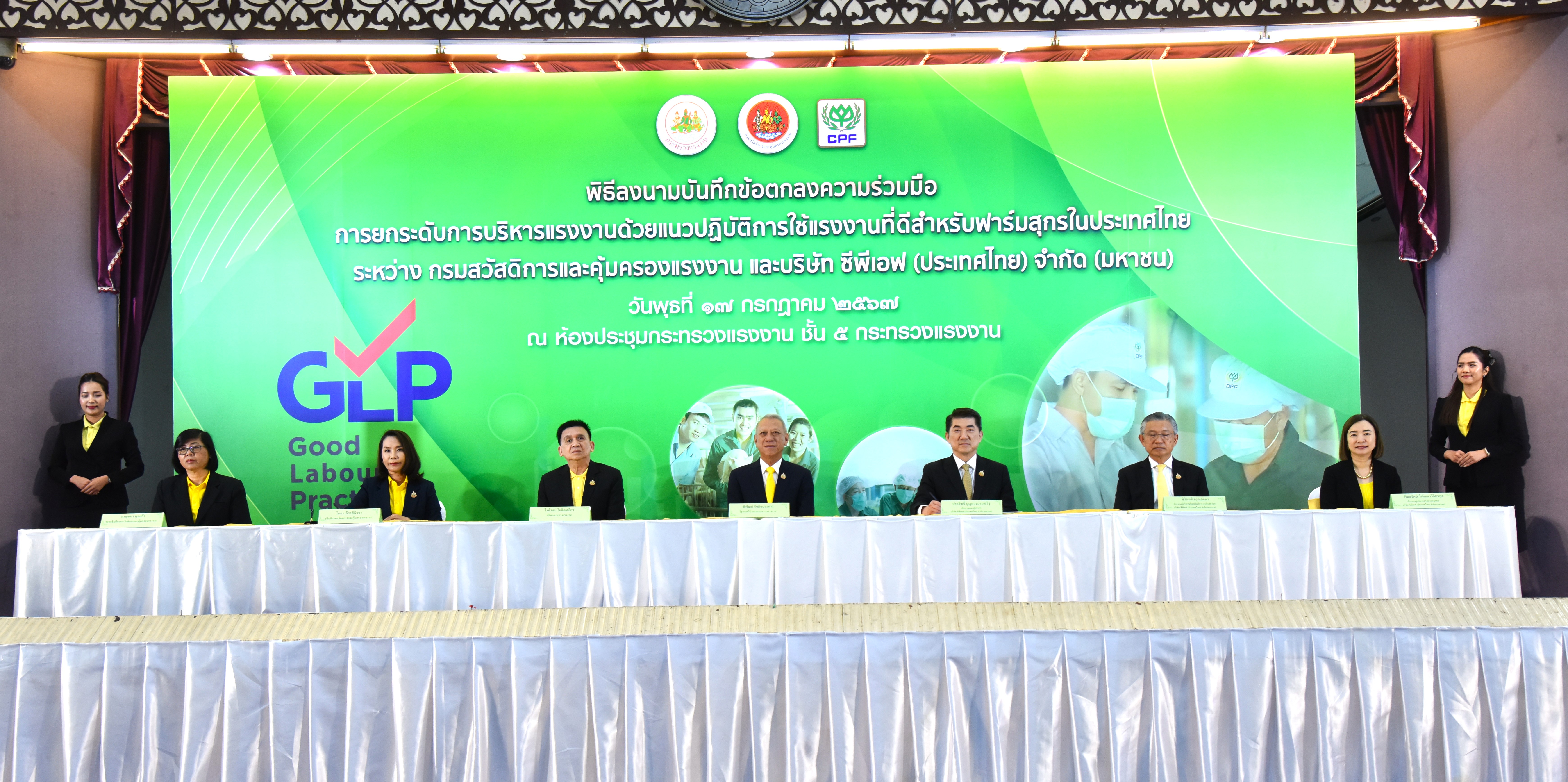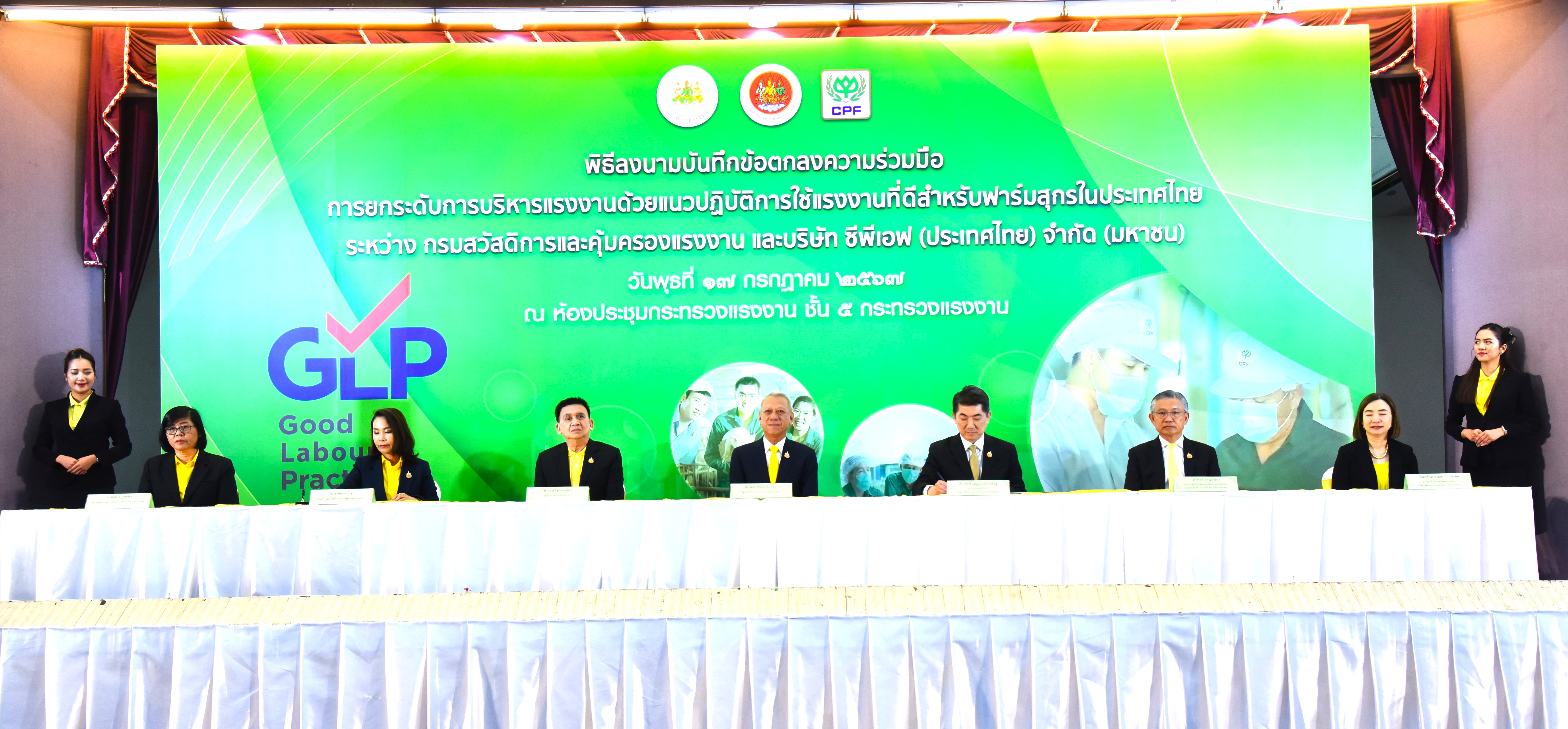 สำหรับธุรกิจสุกร ซีพีเอฟมีเป้าหมายนำหลักแนวปฏิบัติการใช้แรงงานที่ดี หรือ GLP ใช้กับฟาร์มสุกรของบริษัทฯ รวม 106 แห่ง ครบ 100 % ภายใน 1 ปี นี้ จะขยายผลดูแลพนักงานตลอดห่วงโซ่อุปทานของธุรกิจสุกรตั้งแต่ต้นน้ำถึงปลายน้ำ รวมทั้งส่งเสริมและถ่ายทอดความรู้แก่เกษตรกรในโครงการส่งเสริมอาชีพการเลี้ยงสุกรแก่เกษตรกรรายย่อย (Contract Farming) ประมาณ 4,000 รายทั่วประเทศได้นำหลัก GLP ไปใช้บริหารจัดการแรงงานอย่างถูกต้องตามกฎหมายและหลักสากล เพื่อสร้างความเชื่อมั่นให้กับผู้บริโภคผลิตภัณฑ์อาหารของซีพีเอฟมาจากห่วงโซ่การผลิตที่รับผิดชอบต่อสังคมและโลก
