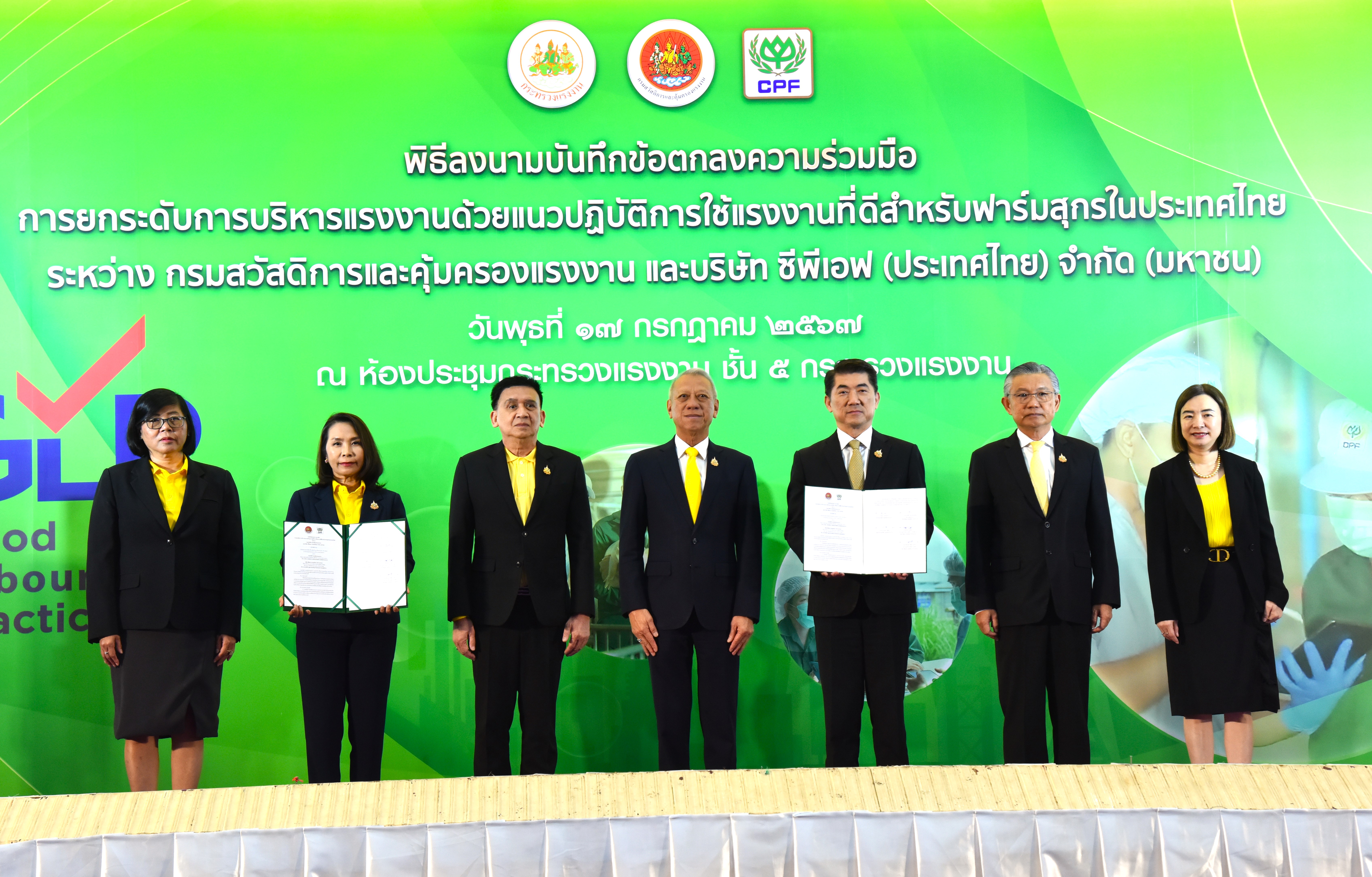 วันที่ 17 กรกฎาคม 2567 เวลา 13.30 น. นายพิพัฒน์ รัชกิจประการ รัฐมนตรีว่าการกระทรวงแรงงาน เป็นประธานในพิธีลงนาม MOU ระหว่างกรมสวัสดิการและคุ้มครองแรงงาน (กสร.) และบริษัท ซีพีเอฟ (ประเทศไทย) จำกัด (มหาชน) ในกลุ่มบริษัทเจริญโภคภัณฑ์อาหาร จำกัด (มหาชน) หรือ ซีพีเอฟ เพื่อยกระดับการบริหารแรงงานด้วยแนวปฏิบัติการใช้แรงงานที่ดีสำหรับฟาร์มสุกรในประเทศไทย เป็นองค์กรต้นแบบขับเคลื่อนการพัฒนามาตรฐานการบริหารจัดการแรงงานในห่วงโซ่การผลิตสินค้าเกษตรสู่ระดับสากล โดยมี นายสิรภพ ดวงสอดศรี ผู้ช่วยรัฐมนตรีประจำกระทรวงแรงงาน นายอารี ไกรนรา เลขานุการรัฐมนตรีว่าการกระทรวงแรงงาน นายภุชงค์ วรศรี ประจำสำนักเลขาธิการนายกรัฐมนตรี นายไพโรจน์ โชติกเสถียร ปลัดกระทรวงแรงงาน และผู้บริหารระดับสูงกระทรวงแรงงาน ร่วมเป็นเกียรติในพิธีลงนามบันทึกข้อตกลงในครั้งนี้ด้วย ณ ห้องประชุมกระทรวงแรงงาน ชั้น 5 อาคารกระทรวงแรงงาน
