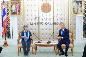 วันที่ 12 มีนาคม 2568 – นายพิพัฒน์ รัชกิจประการ รัฐมนตรีว่าการกระทรวงแรงงาน ให้การต้อนรับคณะกรรมการมูลนิธิพิพิธภัณฑ์แรงงานไทย นำโดย นางสุนี ไชยรส ประธานมูลนิธิฯ และคณะผู้บริหารพิพิธภัณฑ์แรงงานไทย ณ ห้องจัตุมงคล ชั้น 6 กระทรวงแรงงาน โดยมี นายสิรภพ ดวงสอดศรี ผู้ช่วยรัฐมนตรีประจำกระทรวงแรงงาน นายสันติ นันตสุวรรณ ผู้ตรวจราชการกระทรวงแรงงาน รักษาราชการแทน รองปลัดกระทรวงแรงงาน และ ผู้บริหารกระทรวงแรงงานเข้าร่วมด้วย