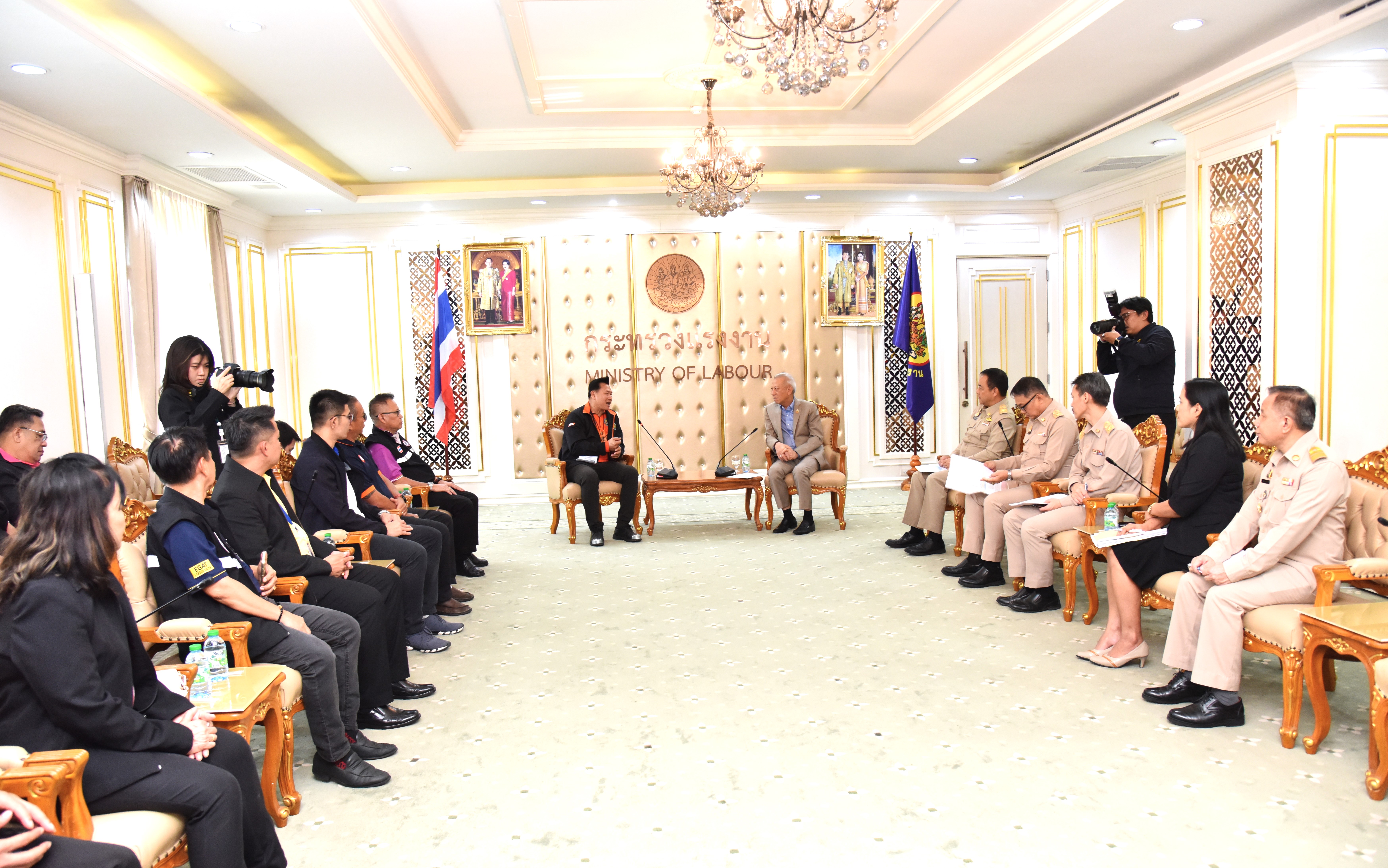 วันที่ 26 พฤศจิกายน 2567 เวลา 13.30 น. นายพิพัฒน์ รัชกิจประการ รัฐมนตรีว่าการกระทรวงแรงงาน พร้อมด้วย นายสมาสภ์ ปัทมะสุคนธ์ รองปลัดกระทรวงแรงงาน เรือเอก สาโรจน์ คมคาย อธิบดีกรมสวัสดิการและคุ้มครองแรงงาน และผู้บริหารกระทรวงแรงงาน ให้การต้อนรับ นายเสนอ วิสุทธนะ ประธานสหภาพแรงงานรัฐวิสาหกิจการไฟฟ้านครหลวง และประธานเครือข่ายไฟฟ้าประปาและยาเพื่อชาติประชาชน (คฟปย.) และคณะ ประกอบด้วย ไฟฟ้าส่วนภูมิภาค ไฟฟ้าฝ่ายผลิตแห่งประเทศไทย การประปานครหลวง องค์การเภสัชกรรม และการประปาภูมิภาค ที่เข้าพบเพื่อหารือถึงปัญหาด้านแรงงานต่างๆ ในหน่วยงานรัฐวิสาหกิจและแรงงานภาคเอกชน ณ ห้องจัตุมงคล ชั้น 6 อาคารกระทรวงแรงงาน