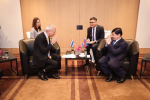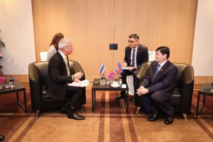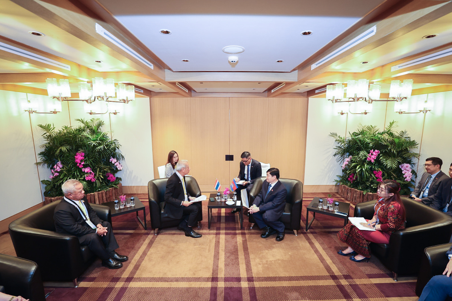 วันที่ 30 ตุลาคม 2567 เวลา 10.00 น.ตามเวลาท้องถิ่นของสาธารณรัฐสิงคโปร์ ซึ่งเร็วกว่าประเทศไทย 1 ชั่วโมง นายพิพัฒน์ รัชกิจประการ รัฐมนตรีว่าการกระทรวงแรงงาน พร้อมด้วย นายบุญสงค์ ทัพชัยยุทธ์ ปลัดกระทรวงแรงงาน นายศักดินาถ สนธิศักดิ์โยธิน ผู้ช่วยปลัดกระทรวงแรงงาน นายวุฒิศักดิ์ ปฐมศาสตร์ อัครราชทูตที่ปรึกษา (ฝ่ายแรงงาน) สำนักงานแรงงานในประเทศสิงคโปร์ ได้หารือทวิภาคี ร่วมกับ รัฐมนตรีเฮง ซัว (H.E. Mr. HENG Sour) รัฐมนตรีว่าการกระทรวงแรงงานและการฝึกอาชีพกัมพูชา ระหว่างการประชุมรัฐมนตรีแรงงานอาเซียน เพื่อผลักดัน การจัดทำบันทึกความเข้าใจ (Memorandum of Understanding (MOU)) และข้อตกลง (Agreement) เกี่ยวกับการจ้างแรงงานประมงกัมพูชาในประเทศไทย ณ สาธารณรัฐสิงคโปร์