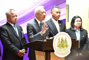 On November 1, 2023, at 15.00 hours, the Labour Minister, Mr. Phiphat Ratchakitprakarn, held a press conference on “extending the registration period to exercise the right to elect employer and insured person representatives as members of the Social Security Committee and extending the time to apply for elections from November 1 – 10, 2023.” From the Prime Minister’s Secretariat’s Office, performing duties for the Ministry of Labour, Mr. Phuchong Worasri, the Social Security Office’s Secretary-General, Mr. Boonsong Thapchaiyut, and administrators of the Social Security Office, attended the press conference for the media at the Ministry of Labour’s conference room, 5th floor, Ministry of Labour.