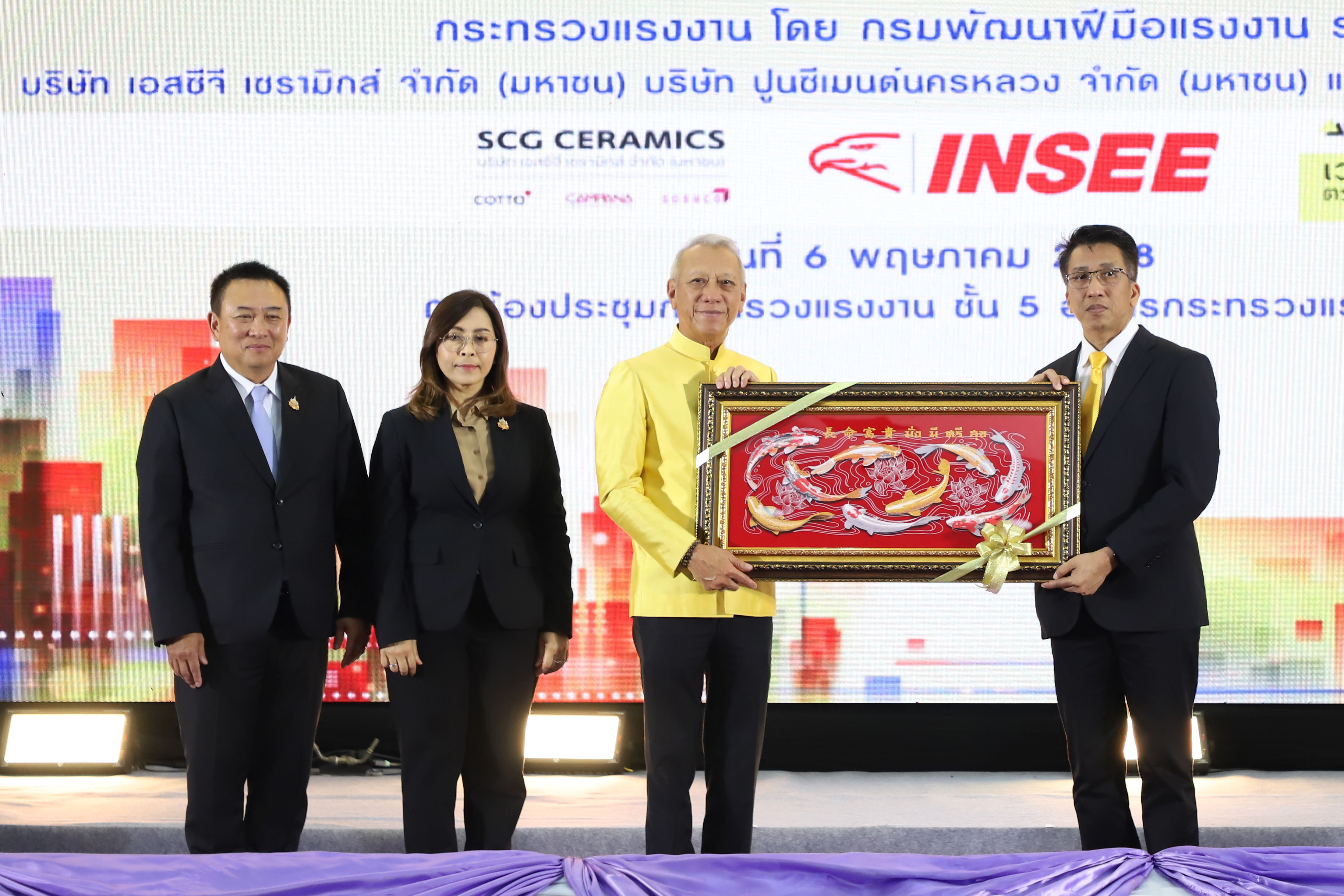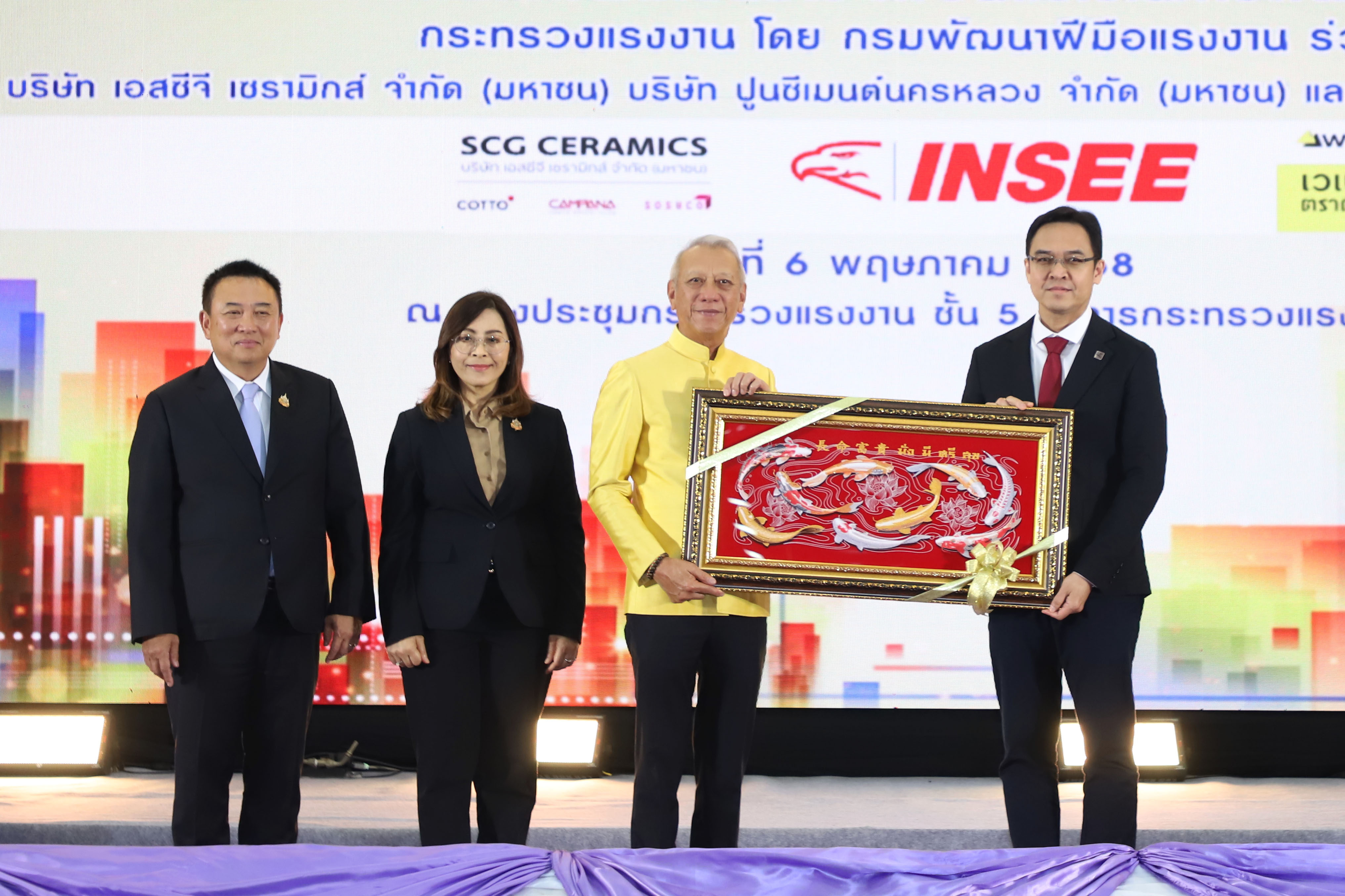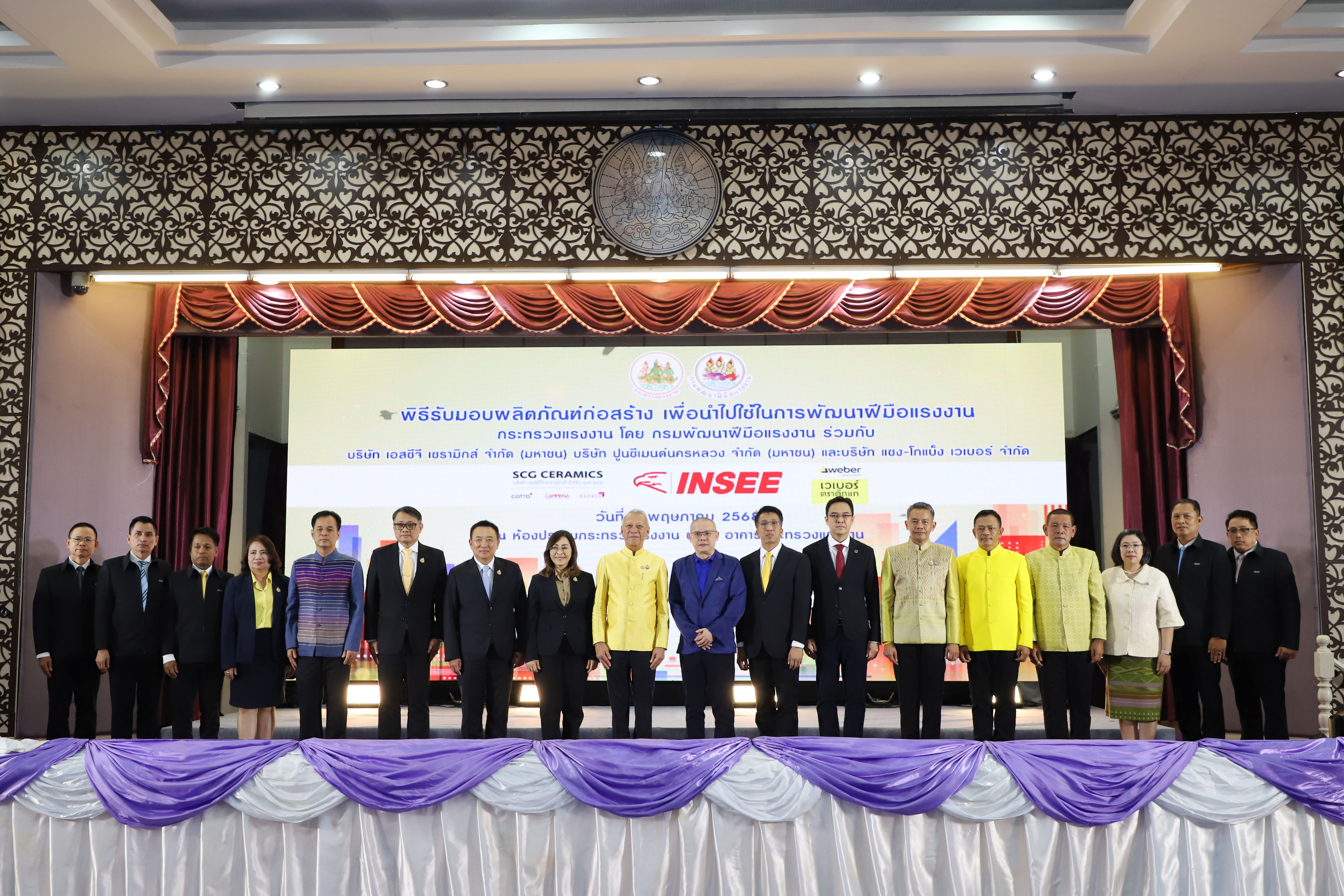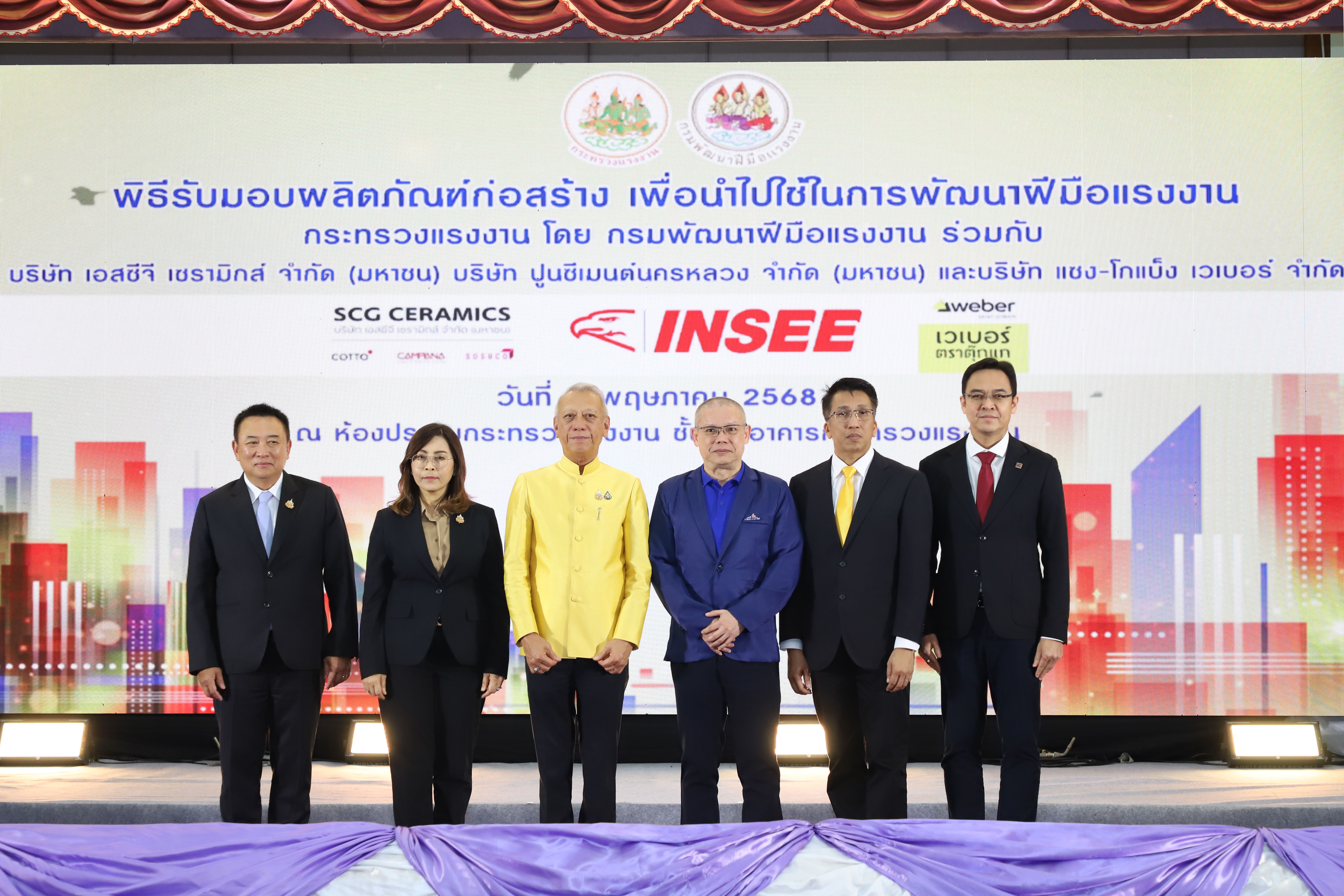 นายพิพัฒน์ รัชกิจประการ รัฐมนตรีว่าการกระทรวงแรงงาน เปิดเผยว่า การจัดงานในวันนี้ เป็นความร่วมมือระหว่างกระทรวงแรงงาน โดยกรมพัฒนาฝีมือแรงงาน บริษัท เอสซีจี เซรามิกส์ จำกัด (มหาชน) บริษัท ปูนซีเมนต์นครหลวง จำกัด (มหาชน) และบริษัท แซง-โกแบ็ง เวเบอร์ จำกัด ที่ร่วมมือกันมาเป็นเวลากว่า 20 ปี ในการส่งเสริมให้แรงงานที่ประกอบอาชีพด้านก่อสร้าง เช่น ช่างก่อสร้าง ช่างปูกระเบื้อง ได้รับการพัฒนาฝีมือแรงงาน เนื่องจากอุตสาหกรรมก่อสร้างเป็นอุตสาหกรรมหนึ่งที่มีบทบาทสำคัญต่อการพัฒนาประเทศ ทั้งในด้านเศรษฐกิจและสังคม เป็นอุตสาหกรรมที่สร้างโครงสร้างพื้นฐานที่จำเป็นต่อการพัฒนาประเทศ และสร้างรายได้ให้แก่แรงงานจำนวนมาก เป็นแหล่งการจ้างงานที่สำคัญ ทั้งในรูปแบบแรงงานฝีมือ และแรงงานทั่วไป ให้มีประสิทธิภาพ และมาตรฐานในการทำงาน ซึ่งกำลังขาดแคลนแรงงานเป็นจำนวนมาก ประกอบกับในยุคปัจจุบันมีการนำเทคโนโลยีต่าง ๆ เข้ามา วัสดุอุปกรณ์ในการก่อสร้างทันสมัยมากขึ้น ช่างฝีมือจึงต้องได้รับการพัฒนาให้มีความรู้ความสามารถให้เท่าทันเทคโนโลยีในปัจจุบัน ดังนั้น การที่ภาคเอกชนที่เป็นบริษัทชั้นนำระดับประเทศ มีความเชี่ยวชาญด้านงานก่อสร้าง มีวัสดุอุปกรณ์ที่ดี และทันสมัย ร่วมมือกับภาครัฐ นับเป็นโอกาสดีของแรงงานไทยอย่างยิ่ง