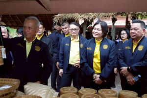 หนึ่งในไฮไลต์สำคัญของการลงพื้นที่ครั้งนี้ คือการเยี่ยมชม “กลุ่มจักสานบ้านนาหัวขัวใต้” ตำบลหนองย่างชิ้น อำเภอเรณูนคร ซึ่งเป็นกลุ่มอาชีพอิสระที่มีสมาชิกกว่า 40 ครัวเรือน ใช้แนวคิดการปลูกไผ่หมุนเวียนเพื่อลดต้นทุนวัตถุดิบ และสร้างผลิตภัณฑ์จักสานที่เป็นมิตรต่อสิ่งแวดล้อมตามแนวทาง BCG Model ผลจากการพัฒนานี้ ทำให้สมาชิกมีรายได้เสริมเฉลี่ย 7,000–8,000 บาทต่อเดือน นอกจากนี้สำนักงานจัดหางานจังหวัดนครพนมยัง ได้เข้ามาสนับสนุนการเข้าถึงกองทุนส่งเสริมอาชีพอิสระ วงเงินสูงสุด 300,000 บาท เพื่อขยายธุรกิจและสร้างโอกาสทางเศรษฐกิจในท้องถิ่น