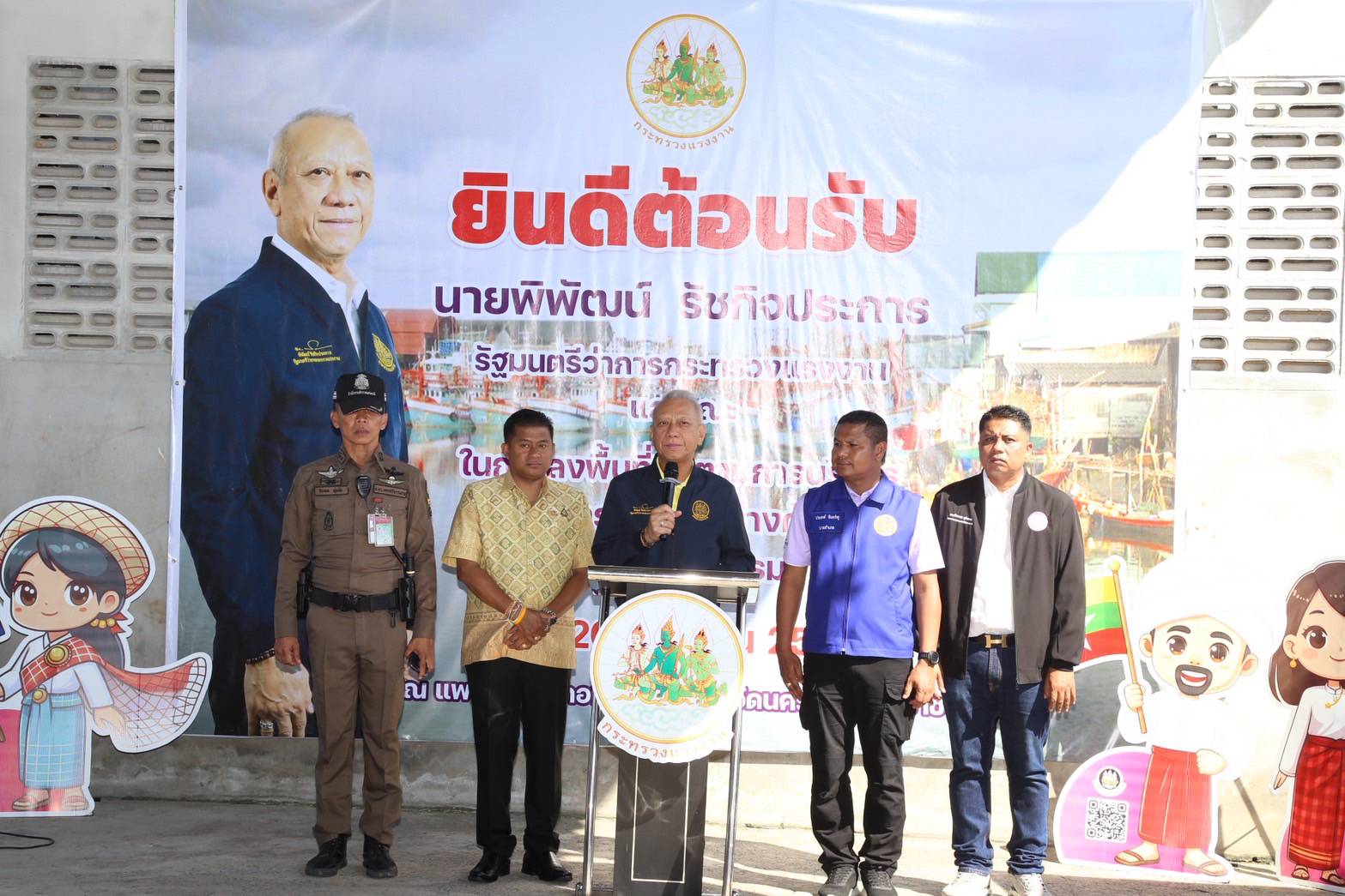 วันที่ 20 เมษายน 2568 นายพิพัฒน์ รัชกิจประการ รัฐมนตรีว่าการกระทรวงแรงงาน ลงพื้นที่พบปะแรงงานต่างด้าวที่ปฏิบัติงานบริเวณหน้าท่า เพื่อแนะแนวการปฏิบัติตามกฎหมายที่เกี่ยวข้องในการบริหารจัดการแรงงานต่างด้าวจังหวัดนครศรีธรรมราชตามนโยบายรัฐบาล พร้อมเยี่ยมชมบูธหน่วยงานสังกัดกระทรวงแรงงานจังหวัดนครศรีธรรมราช โดยมี นายภุชงค์ วรศรี ประจำสำนักเลขาธิการนายกรัฐมนตรี ปฏิบัติหน้าที่ประจำกระทรวงแรงงาน นาวาอากาศเอก อธิคุณ คงมี คณะทำงานรัฐมนตรีด้านการบริหารจัดการแรงงานผิดกฎหมาย นายภูมิพัฒน์ เหมือนจันทร์ โฆษกกระทรวงแรงงาน นายสมชาย มรกตศรีวรรณ อธิบดีกรมการจัดหางาน นายสมชาย ลีหล้าน้อย ผู้ว่าราชการจังหวัดนครศรีธรรมราช กล่าวต้อนรับ นายพิเชษฐ์ ทองพันธ์ ผู้ตรวจราชการกระทรวงแรงงาน หัวหน้าส่วนราชการกระทรวงแรงงานจังหวัดนครศรีธรรมราช ผู้ประกอบการ ลูกจ้างแรงงานต่างด้าว ผู้นำชุมชนท้องถิ่น ร่วมให้การต้อนรับ ณ แพปลา ว.นิตย์ภวรรณ อำเภอท่าศาลา จังหวัดนครศรีธรรมราช