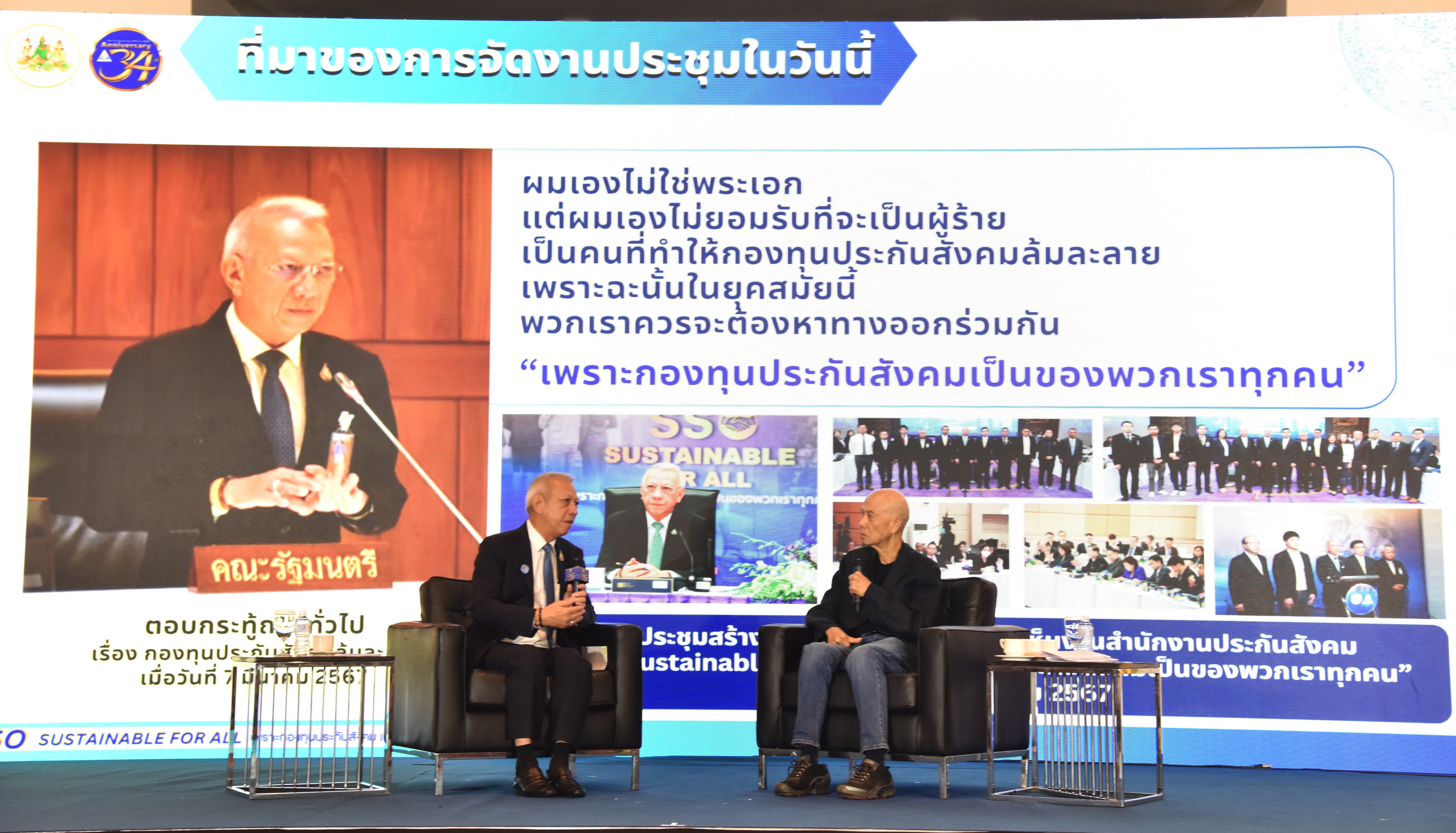 นายพิพัฒน์ รัชกิจประการ รัฐมนตรีว่าการกระทรวงแรงงาน กล่าวว่า กองทุนประกันสังคมสร้างหลักประกันทางสังคมให้แรงงาน ตั้งแต่ปี พ.ศ. 2533 จนถึงปัจจุบัน เป็นระยะเวลากว่า 34 ปี ปัจจุบันกองทุนมีเงินสะสม จำนวน 2.6 ล้านล้านบาท ให้ความคุ้มครองผู้ประกันตนมาตรา 33 มาตรา 39 และมาตรา 40 จำนวนกว่า 24 ล้านคน ซึ่งประเทศไทยเข้าสู่ยุคสังคมผู้สูงวัย แรงงานที่จะเข้าสู่ระบบการทำงานจะลดน้อยลง โดยจากการคำนวณทางคณิตศาสตร์ คาดว่าอีก 30 ปีข้างหน้า กองทุนประกันสังคมจะเหลือเท่ากับศูนย์ นั่นคือ การล่มสลายของกองทุนประกันสังคม เราจะทำอย่างไร ให้กองทุนอยู่ได้นานที่สุด หรือ เป็นอินฟินิตี้ เพราะฉะนั้นเราจึงต้องหาวิธีที่หลากหลาย เพื่อเตรียมป้องกัน ก่อนที่ปัญหาจะเกิด