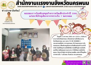 วันพุธที่ 11 มกราคม 2566 เวลา 13:30 น. สำนักงานแรงงานจังหวัดนครพนม พร้อมหน่วยงานสังกัดแรงงานจังหวัดนครพนม และ ชมรม TO BE NUMBER 1 บมจ.สยามแม็คโคร สาขานครพนม เข้าร่วมมอบของรางวัล ขนมและนม เพื่อสนับสนุนกิจกรรมวันเด็กแห่งชาติ ประจำปี 2566 โดยมีวัตถุประสงค์เพื่อให้เยาวชนได้รับรู้ความบันเทิง และมีโอกาสได้แสดงความสามารถ ทำให้เกิดความมั่นใจในตนเอง อันจะนำไปสู่การห่างไกลยาเสพติด แก่สถานีวิทยุเสียงจากทหารเรื วันพุธที่ 11 มกราคม 2566 เวลา 13:30 น. สำนักงานแรงงานจังหวัดนครพนม พร้อมหน่วยงานสังกัดแรงงานจังหวัดนครพนม และ ชมรม TO BE NUMBER 1 บมจ.สยามแม็คโคร สาขานครพนม เข้าร่วมมอบของรางวัล ขนมและนม เพื่อสนับสนุนกิจกรรมวันเด็กแห่งชาติ ประจำปี 2566 โดยมีวัตถุประสงค์เพื่อให้เยาวชนได้รับรู้ความบันเทิง และมีโอกาสได้แสดงความสามารถ ทำให้เกิดความมั่นใจในตนเอง อันจะนำไปสู่การห่างไกลยาเสพติด แก่สถานีวิทยุเสียงจากทหารเรือ 7 นครพนม กับหน่วย นรข.นครพนนมอ 7 นครพนม กับหน่วย นรข.นครพนนม